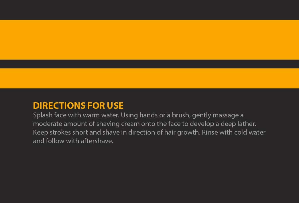 - DIRECTIONS FOR USE – Splash face with warm water. Using hands or a brush, gently massage a moderate amount of shaving cream onto the face to develop a deep lather. Keep strokes short and shave in direction of hair growth. Rinse with cold water and follow with aftershave.