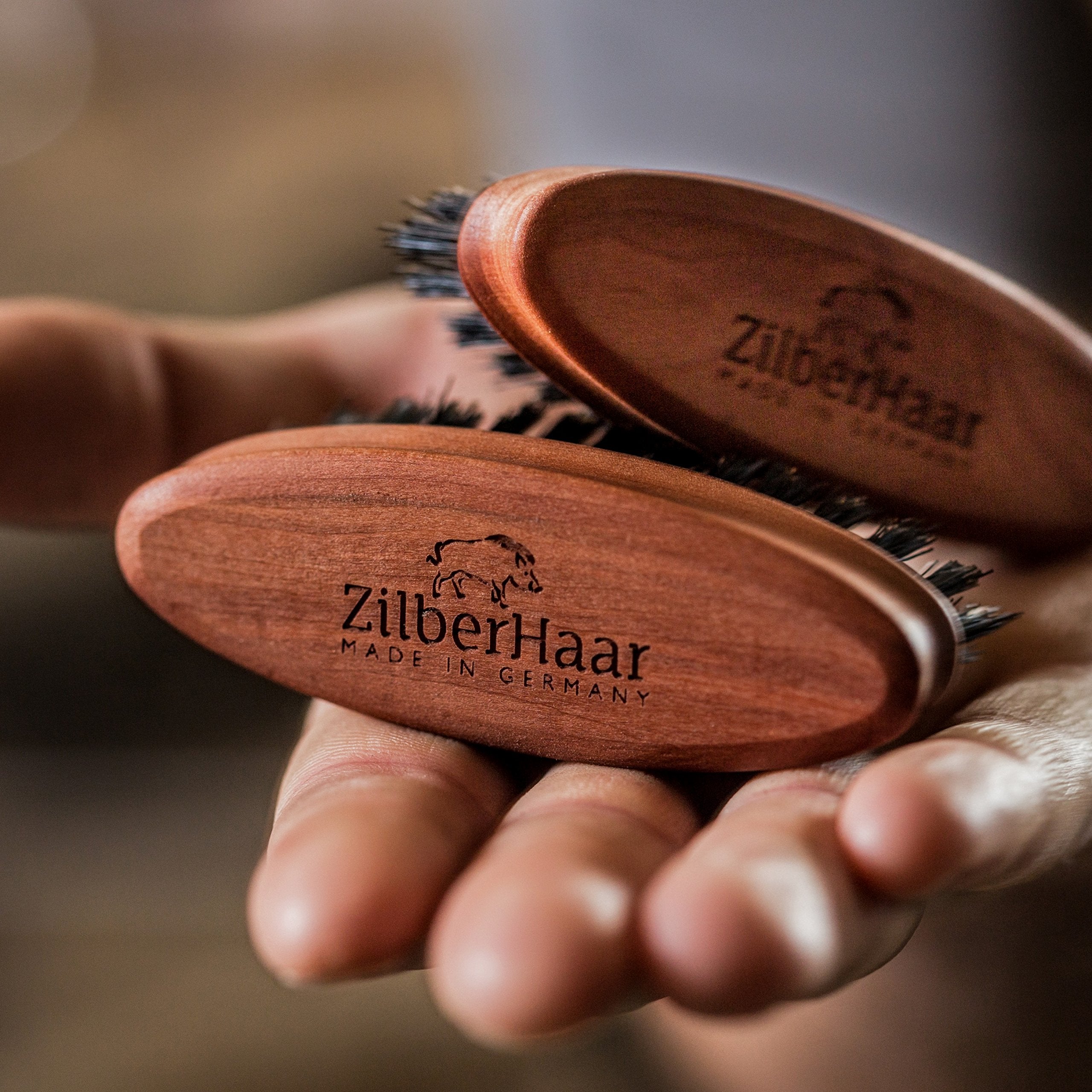 Boar Bristle Pocket Beard Brush by Zilberhaar - Firm Bristle Small Brush - Perfect Grooming Tool for Any Beard or Moustache - Works For Any Beard - Made In Germany by ZilberHaar Store