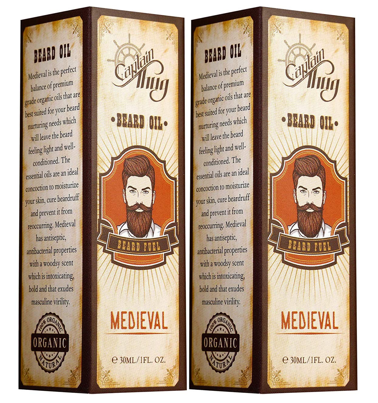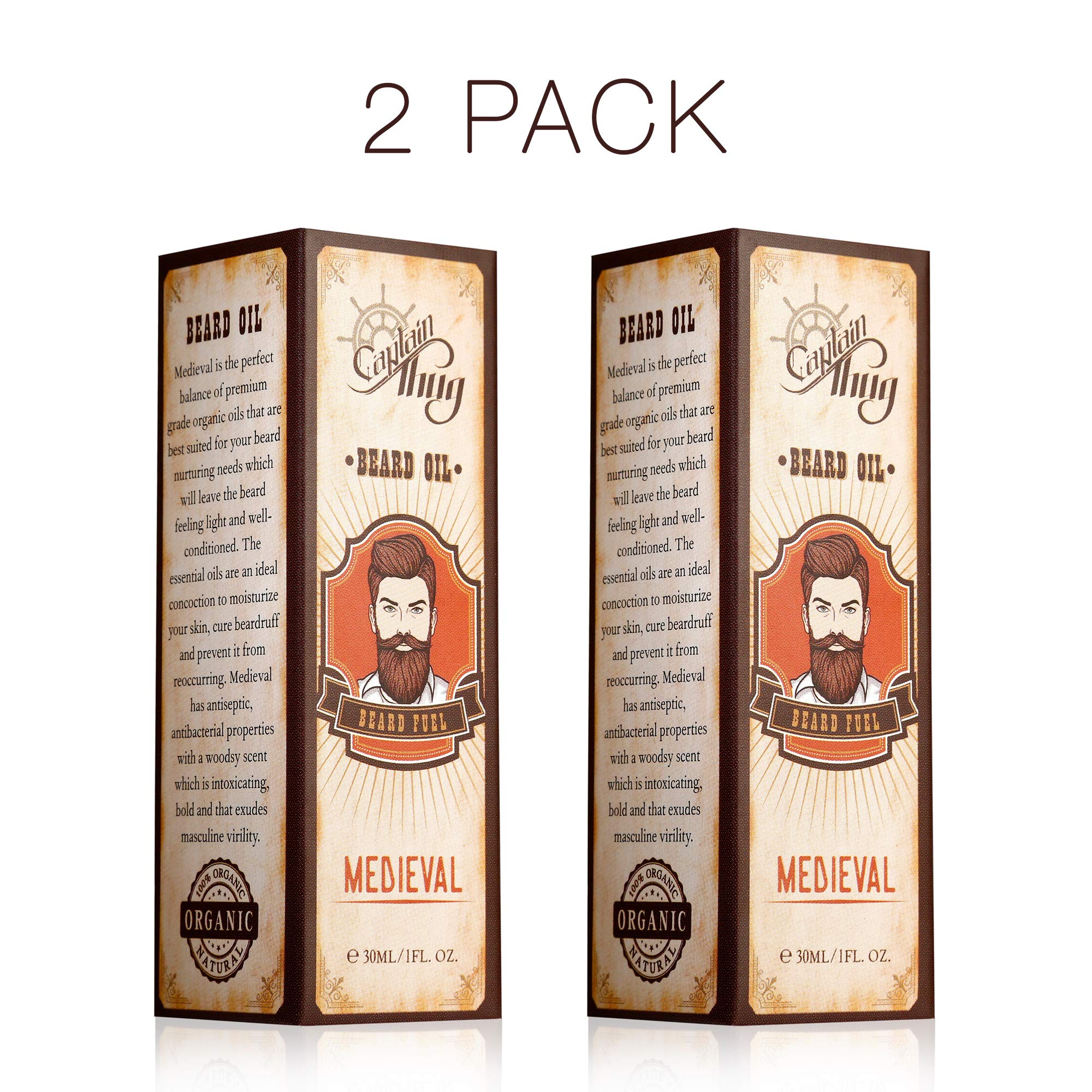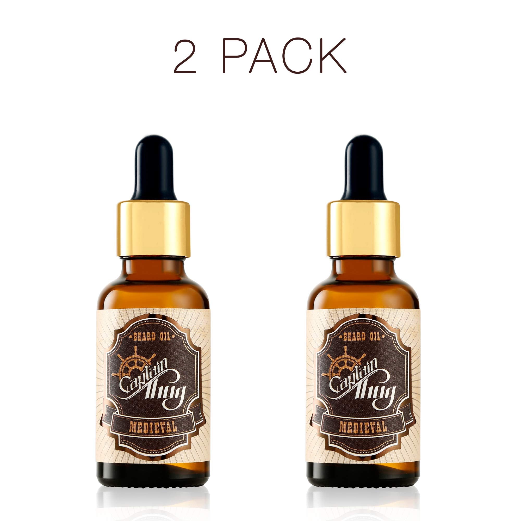 Captain Thug Medieval Beard Oil Restores Moisture, Softens And Reduces Beard Itch for All Lengths Of Facial Hair, 2 Pack