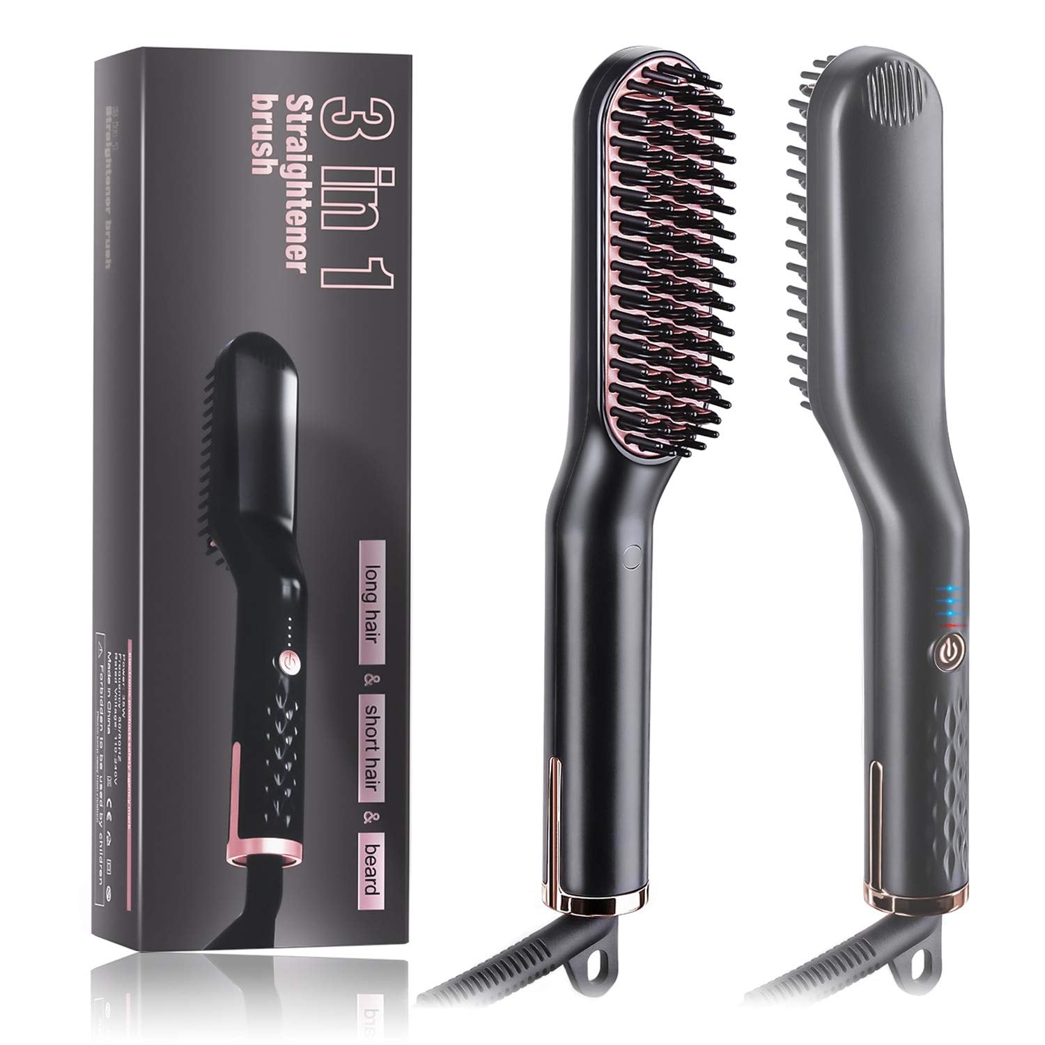 Multifunctional Heated Ionic Beard Straightener Brush Comb: Can be quickly heated in 30 seconds, create smoothing hair and beard, straightening beard to meet different styles, flatten side hair & straighten curly hair, keep your hair and beard a long lasting cool effect and maintained a whole day Designed for Beard:...