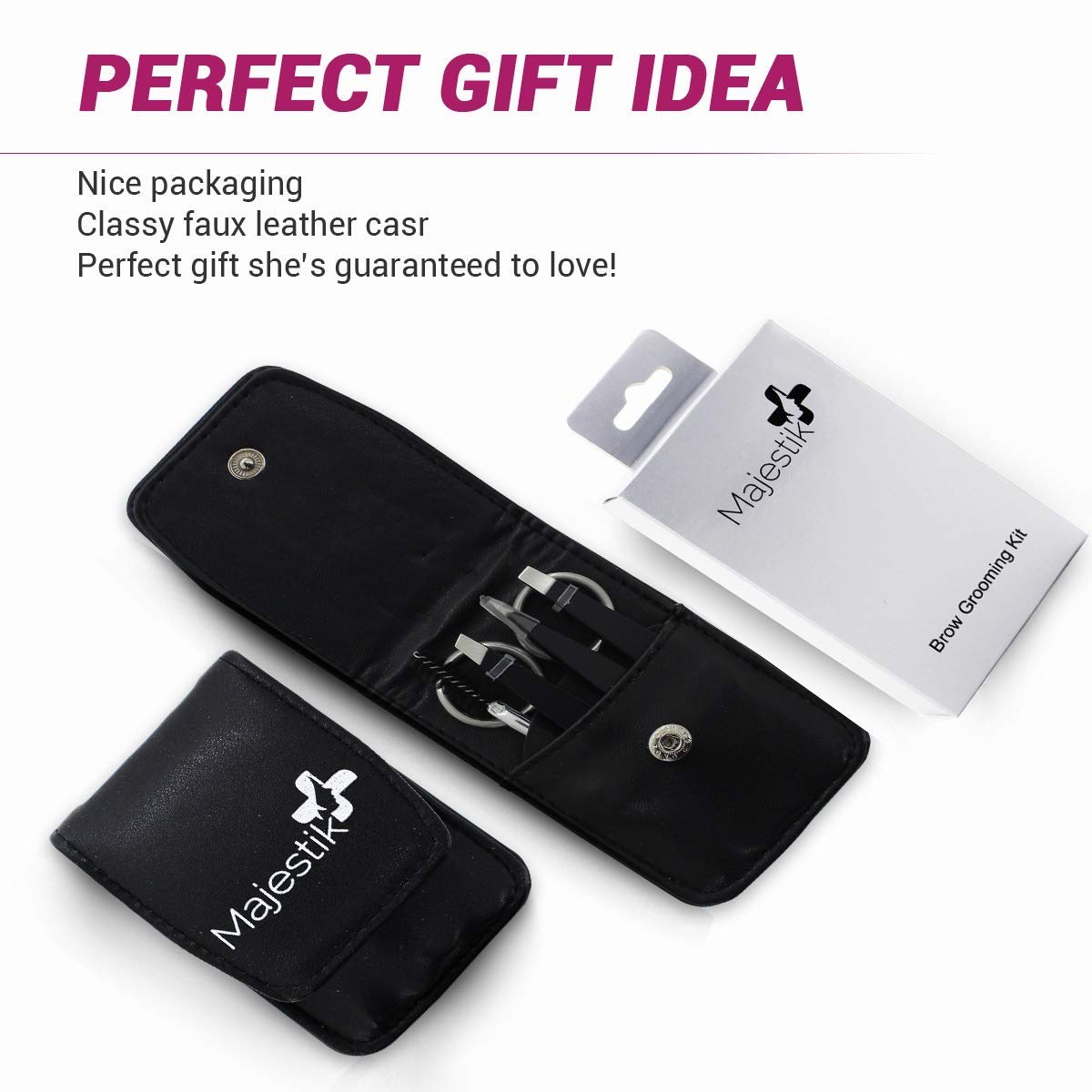 Eyebrow Grooming Set, 3Pcs Tweezers Set, Curved Stainless Steel Scissors, Spoolie Eyebrow Brush With Black Case Eyebrow Kit For Men And Women | 100% of Satisfaction by Majestik+