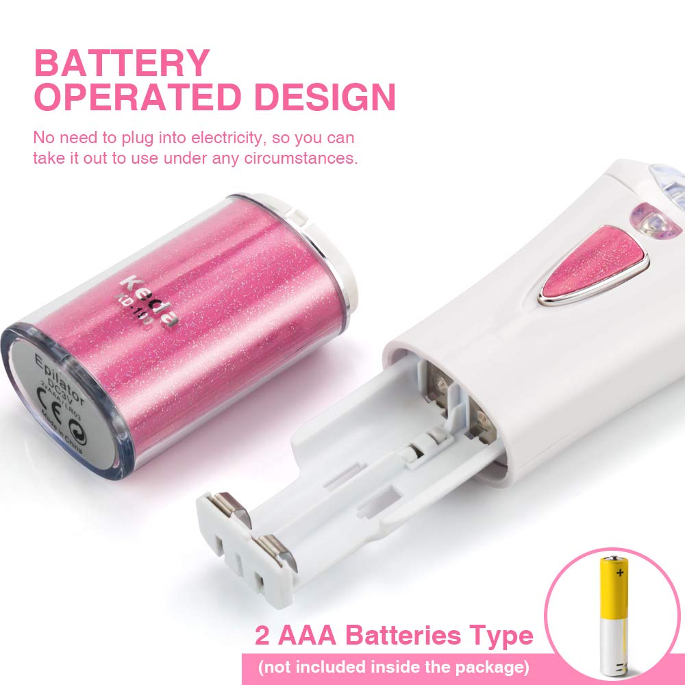 - 🎀【Portable Mini Size】 Battery-operated design epilators bring great convenience to cordless use and avoid the trouble of charging and waiting, no need to plug into electricity so you can take it out and use it under any circumstances. (NO BATTERY in our product, please buy 2 AAA batteries separately)