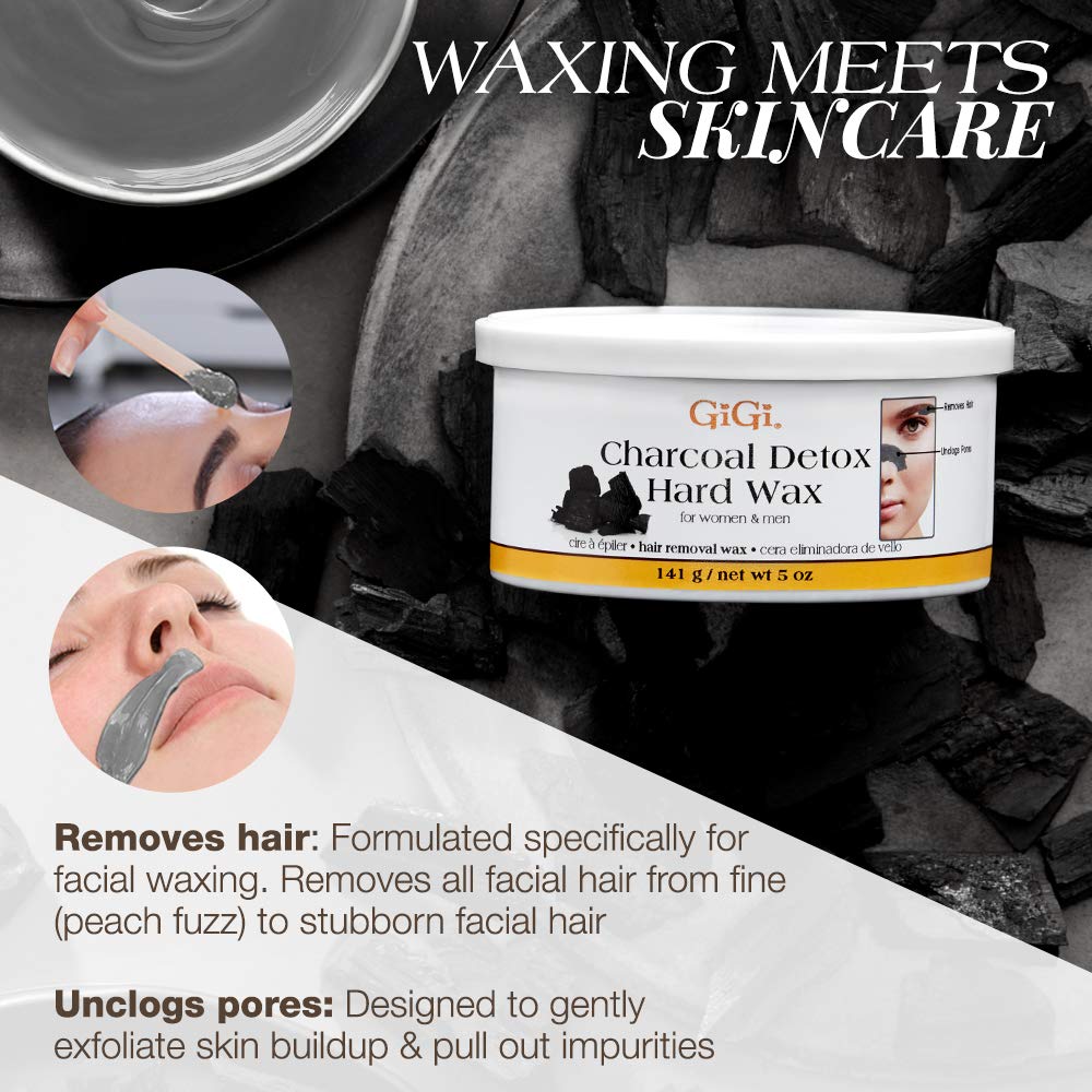 - DUAL PURPOSE DEPILATORY HARD WAX: This revolutionary GiGi Charcoal Detox Hard Wax is a dual purpose depilatory hard wax that gently removes fine to coarse unwanted hair and unclogs pores at the same time for an enhanced waxing experience. This hair removal wax gently exfoliates skin buildup and pull out impurities, leaving your skin silky smooth and clear.