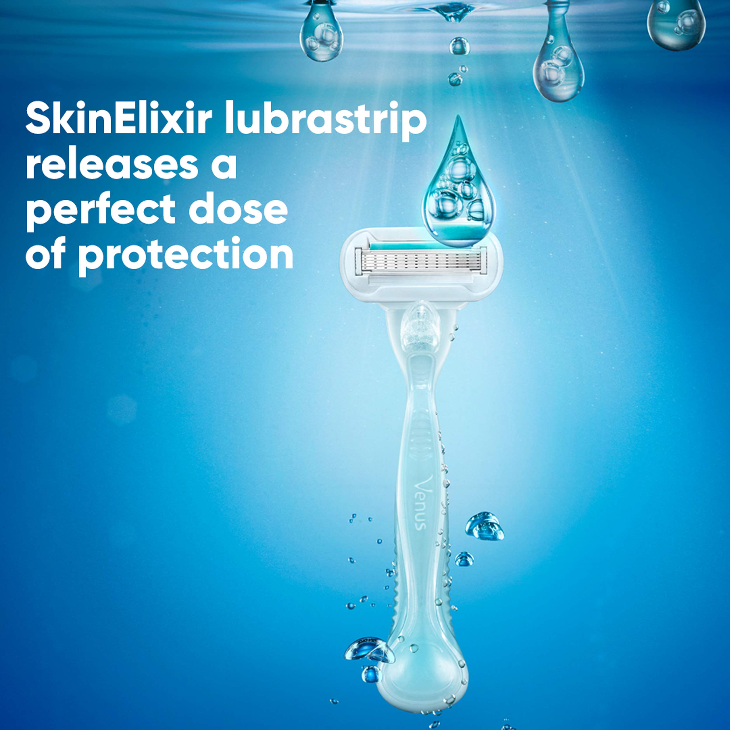 Venus razors for women are designed with a woman’s body in mind. From handles designed for a comfortable grip to pivoting heads that contour to curves, Venus razors are designed to help reveal touchably smooth skin. The Gillette Venus Extra Smooth Sensitive Razor is perfect for protecting your sensitive skin. With 5 blades for a long lasting smooth shave and SkinElixir that releases a perfect dose of protection you can feel. Did you know that any Venus blade refill fits any Venus razor handle? Shave your way without buying a whole new Venus handle.