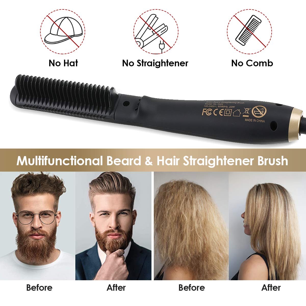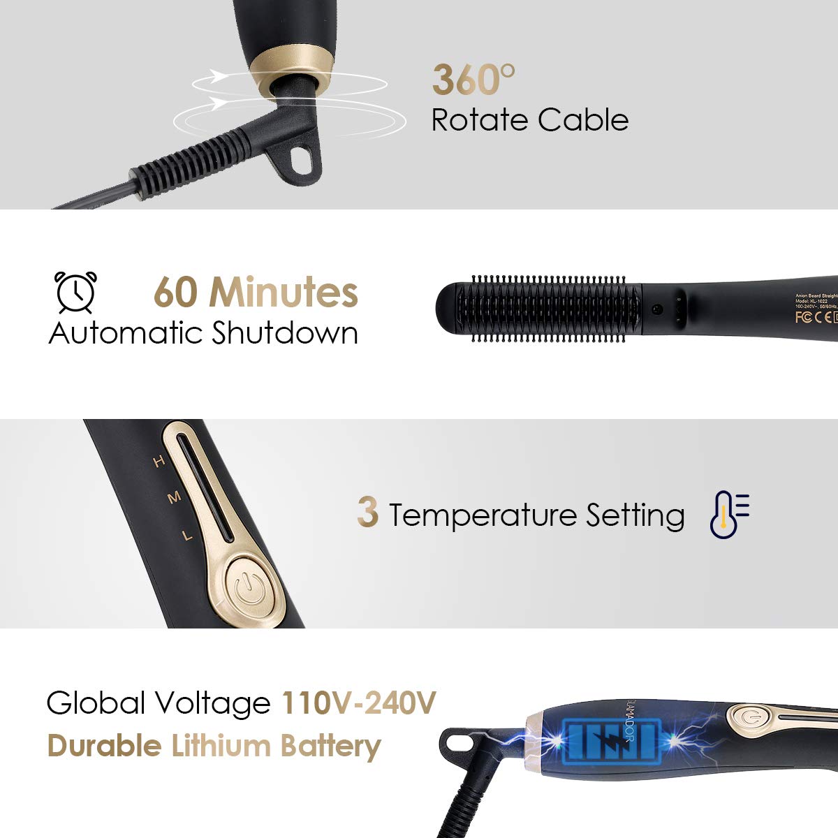 - ➤【3 Level Adjustable Temperature】 The temperature of this beard brush can be adjusted from 320℉to 430℉(160℃-220℃) as your like. For specific beard and hair types like thin hair, damaged hair, thick hair, our straightener will perfectly satisfy your request by adjusting the temperature.