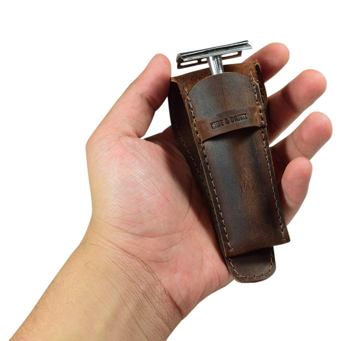 • PERFECT TRAVEL COMPANION: Keep your razor and personal belongings and separate with this Leather Safety Razor Case. Made with Hide & Drink’s revolutionary Full-Grain Leather, this Safety Razor Case is sure to withstand a lifetime’s worth of travel and usage. Small enough to easily fit into any travel bag, yet large enough to fully protect your razor, this is the perfect travel accessory that is sure to elevate all aspects of your travel experience.