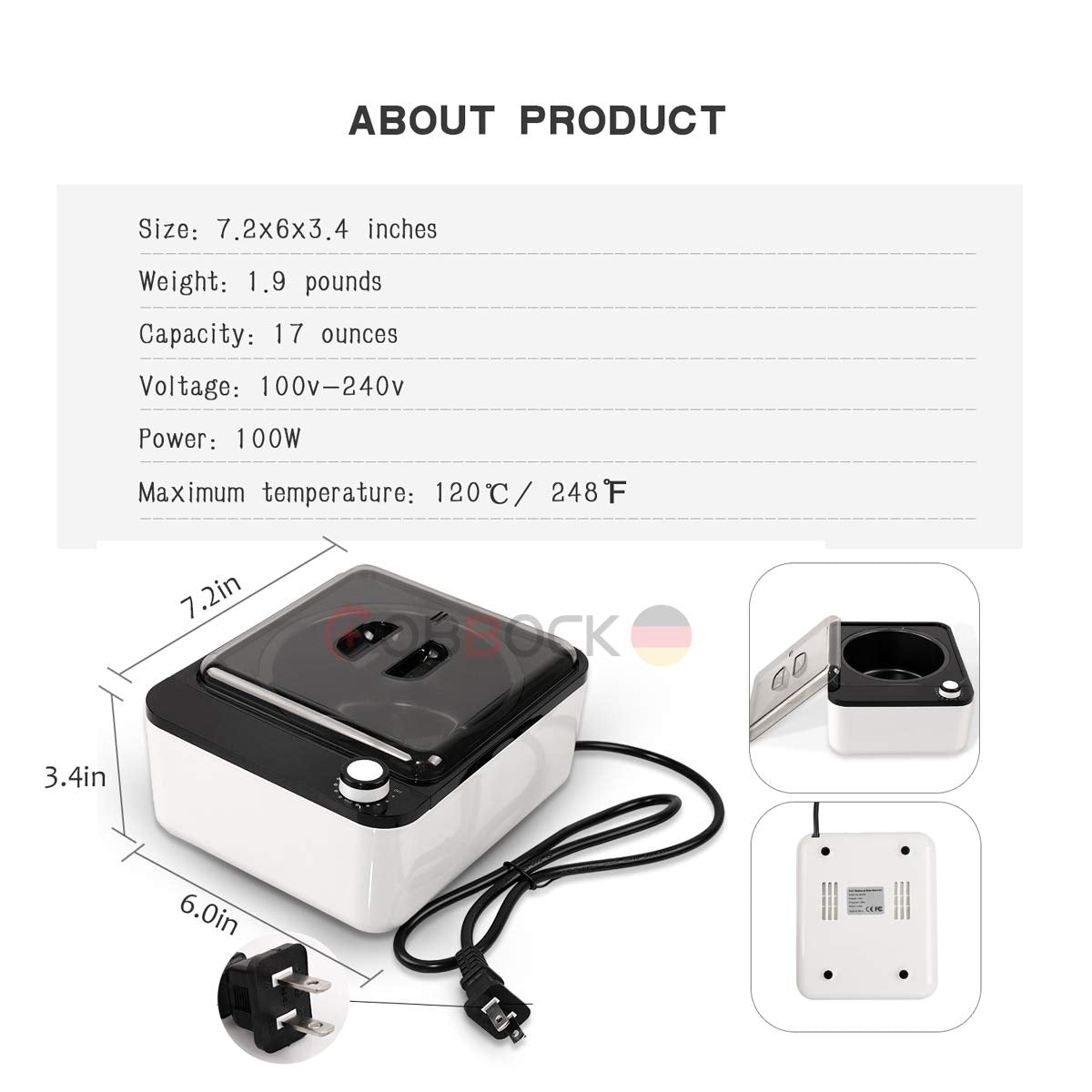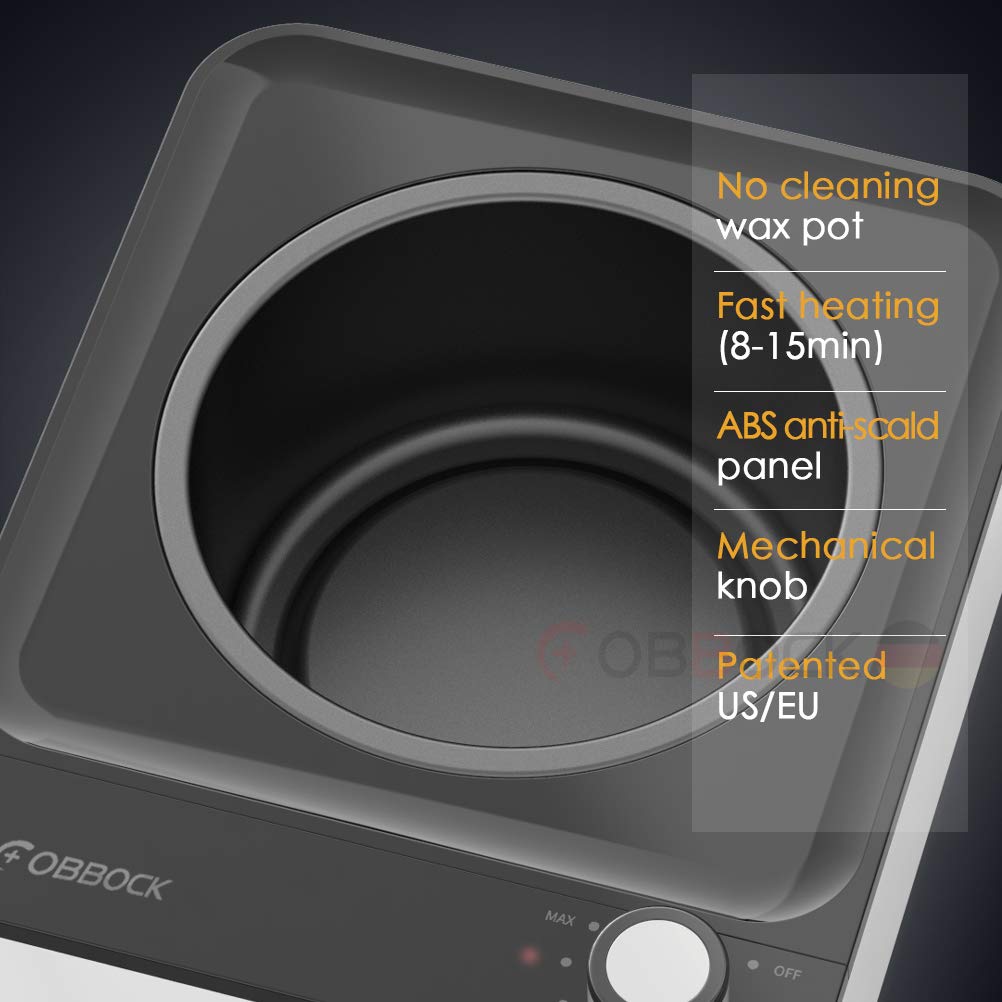 - This product of ours has been applied for patents in America, Europe and Japan and it adopts German manufacturing process.The wax melter newly developed by OBBOCK has the advantages of rapidly heating various hard wax beads and brazilian wax, It uses nickel and copper coils, and it takes only 8-15 minutes to heat the wax product quickly and stably (other products usually take 15-25minutes).