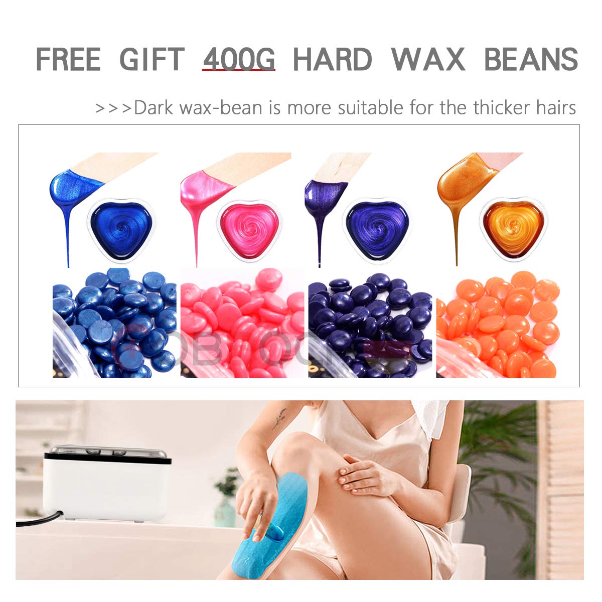 - This KIT has more 400g hard wax beans. This wax beans is added with pearl essence, which is more delicate and shiny in appearance, like crystal clear amber. This formula can increase the adsorb ability of hair and make hair removal easier and has more thorough effect.