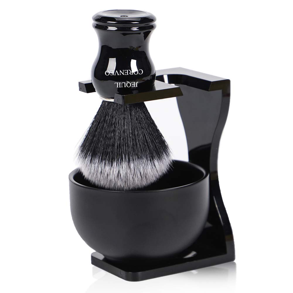 **Je &Co Professional Shaving Brush Set-We are aiming to create a better shaving experience for you.** We cannot guarantee this is the best shaving set, but we promise this is the best shaving set in its price range! Our Synthetic Shaving Brush Set: -No animal product,100% artificial bristle hair. -Brush feels extreme soft, efficient in water absorbing and lathering. \- Stainless steel bowl and stand in black, sturdy and classical. -All materials have been deep cleaned and sterilized. -Outstanding shaving experience for every type of beard. -Durable brush matches steel holder and bowl, ideal design as a gift for yourself or someone you cherish. **Instructions for use:** 1\. Wash the brush with warm water after everyday use. 2\. Hang the brush to dry, do not keep it wet for long. 3\. Do not use strong disinfectants or detergents.