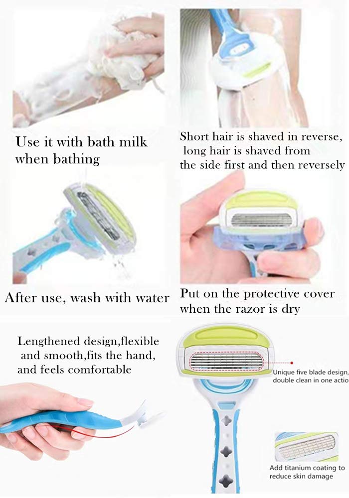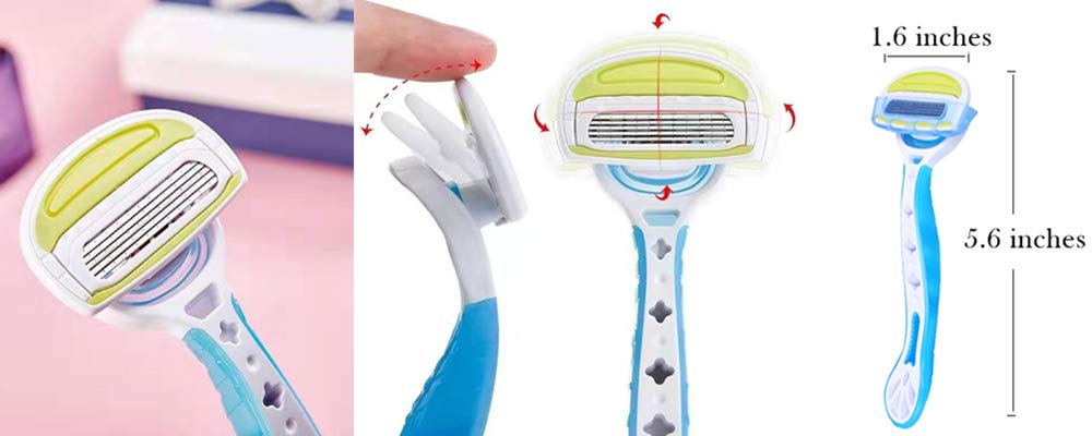 • ♞【UNIQUE FIVE-BLADE DESIGN】➟This razor is imported from Japan. It has a swinging blade design, which can adjust the angle of the blade up and down to fit the skin better according to the fluctuation of the skin in different parts. The cutter head is a special five-blade design,which removes hair more cleanly. The blade has a titanium coating to reduce the damage to the skin. The blade will not rust and will not become dull. Can be a perfect replacement for disposable bikini razors.