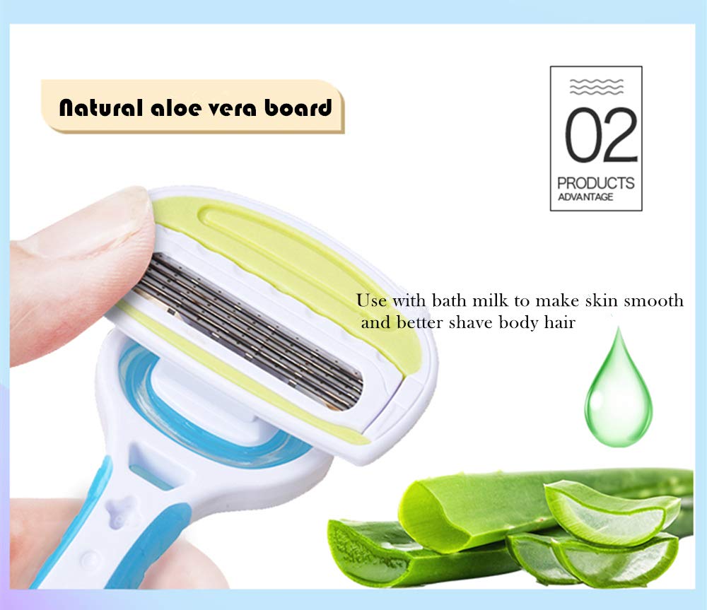 • ♞【GOOD USE EXPERIENCE】➟This razor will not pull the body hair. The aloe strip on the blade can make the skin lubricate in time, making the whole shaving process very smooth and easy. It is recommended to use with bath milk to make the skin smoother and remove body hair without rupturing the skin. 【Note: Do not shave body hair on dry skin. 】