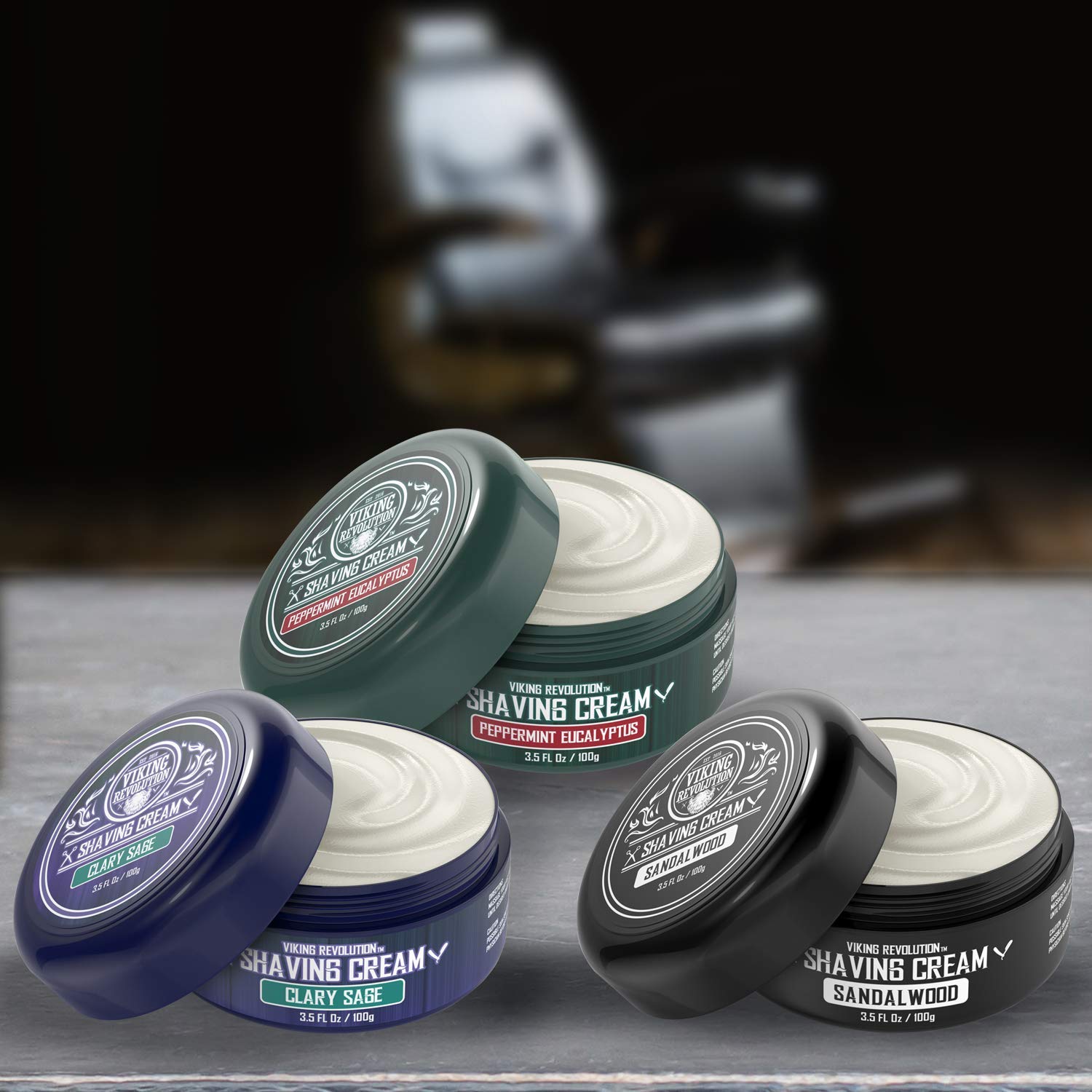 Luxury Shaving Cream 3 Pack- Sandalwood, Peppermint & Eucalyptus, Clary Sage - Soft, Smooth & Silky Shaving Soap - Rich Lather for the Smoothest Shave - 3.5oz by Viking Revolution Store