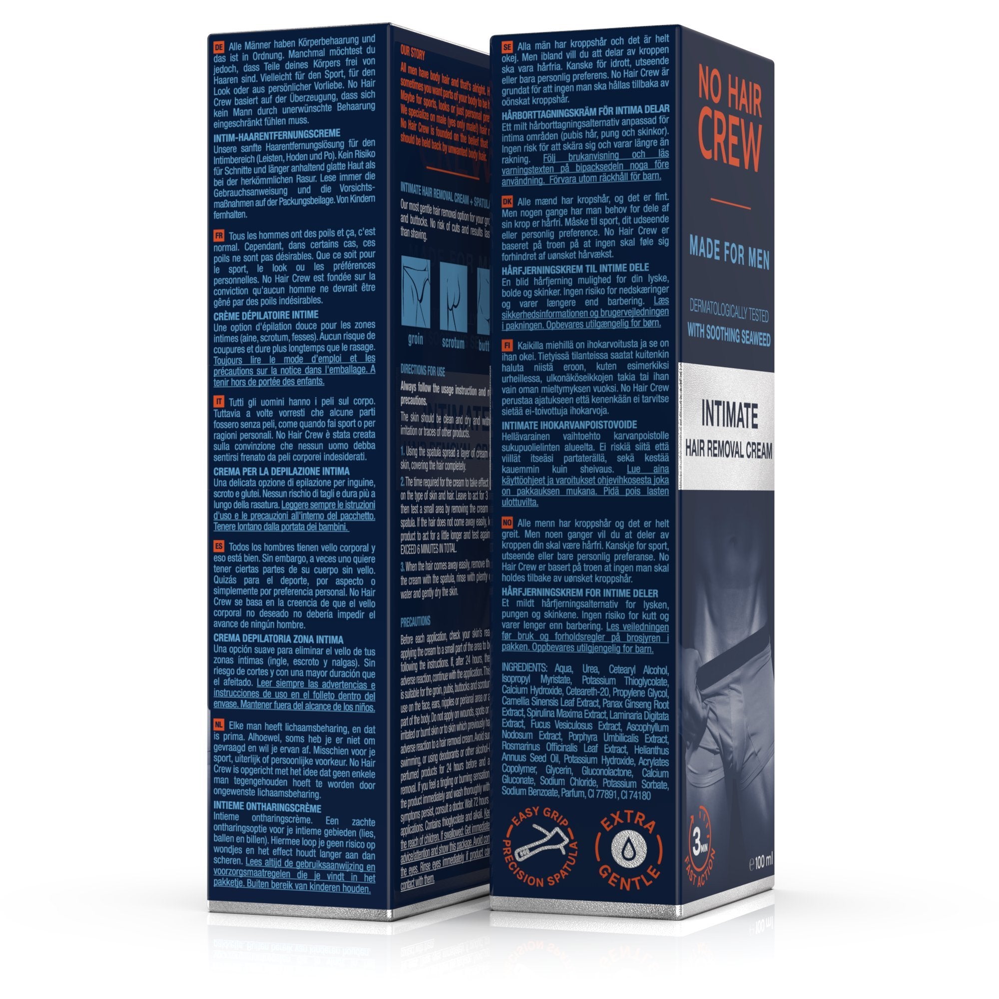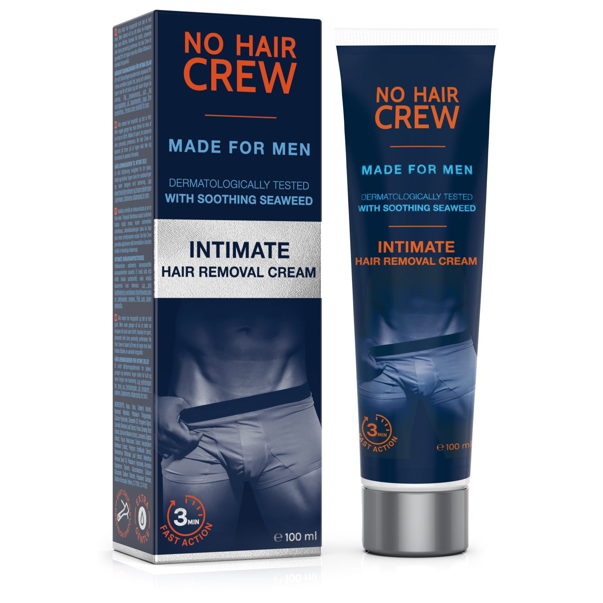 No Hair Crew Intimate/Private At Home Hair Removal Cream for Men - Painless, Flawless, Soothing Depilatory for Unwanted Coarse Male Body Hair, 100ml