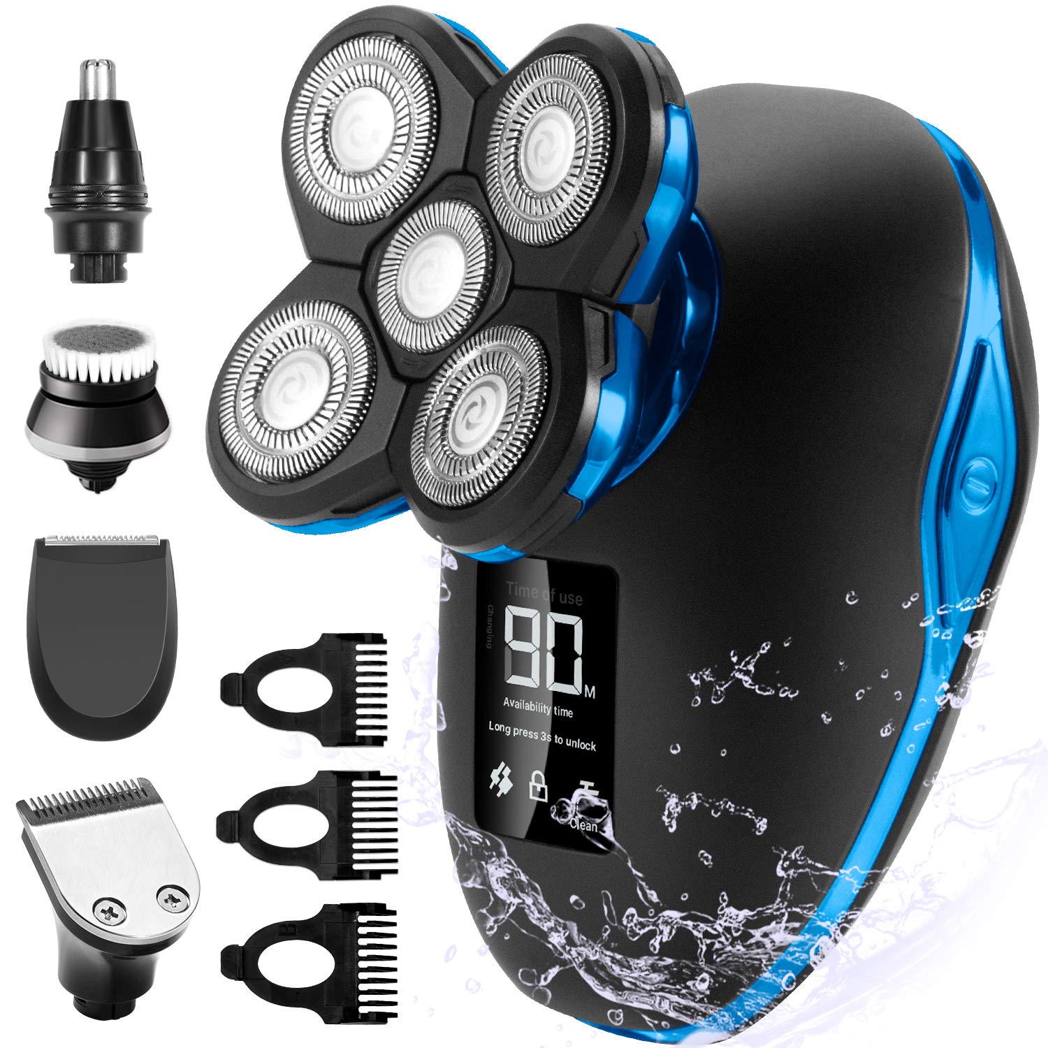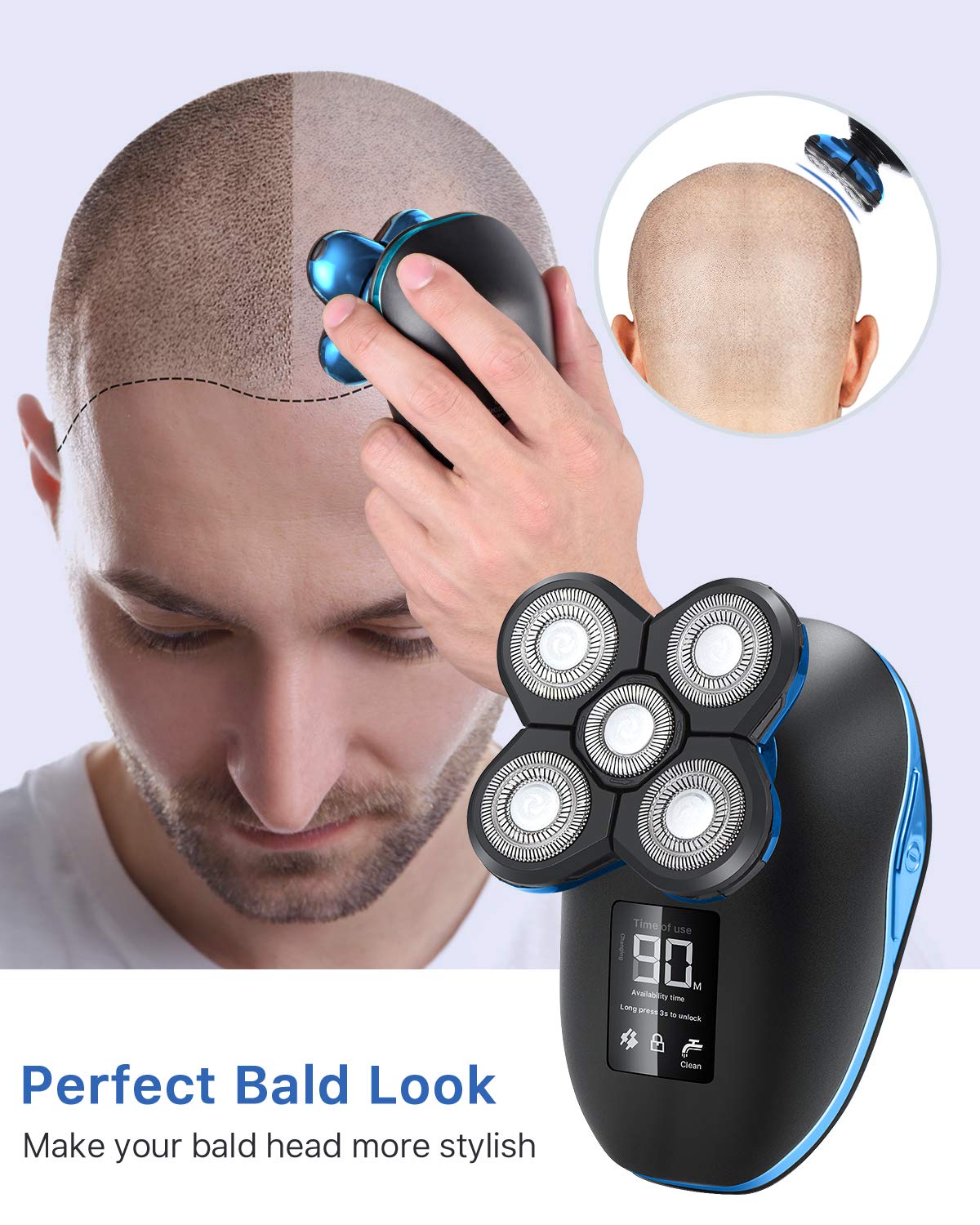 OriHea Head Shavers for Bald Men Wet Dry Electric Razor Bald Head Shaver Rotary Cordless Hair Clippers Nose Hair Trimmer Waterproof USB Rechargeable with 4D Floating 5 Razor Head