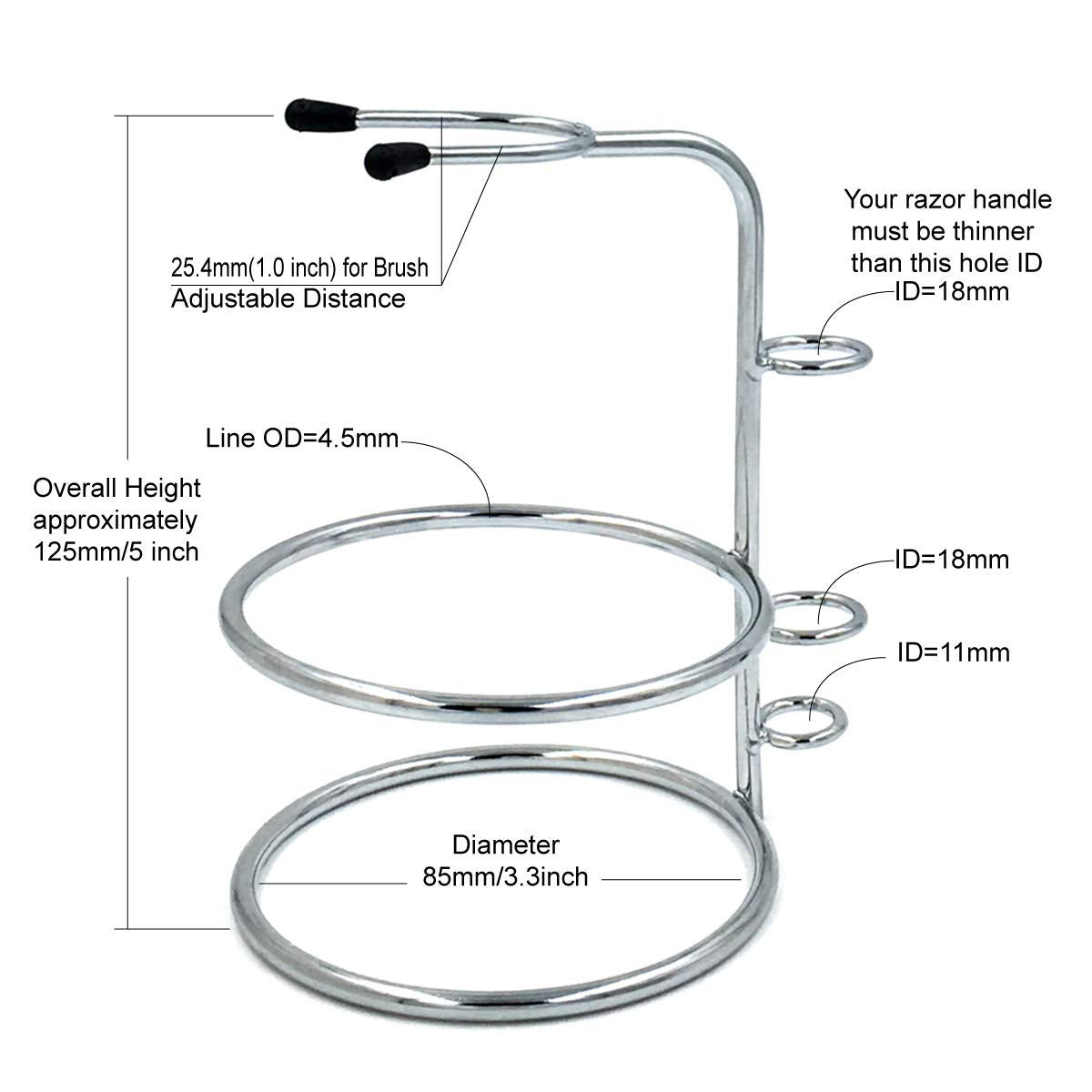 - This universal stand fits most brush and razor models(But not all), If your brush can not fit this holder open perfect, you just can adjust the distance. The loops of stand for Razor's handle =18mm, it can fit Gillette Fusion and Mach 3 series,Safety Razor and most manual razors(But not all), It is better that Please measure the diameter of your razor handle(must be thinner than 18mm) before purchasing