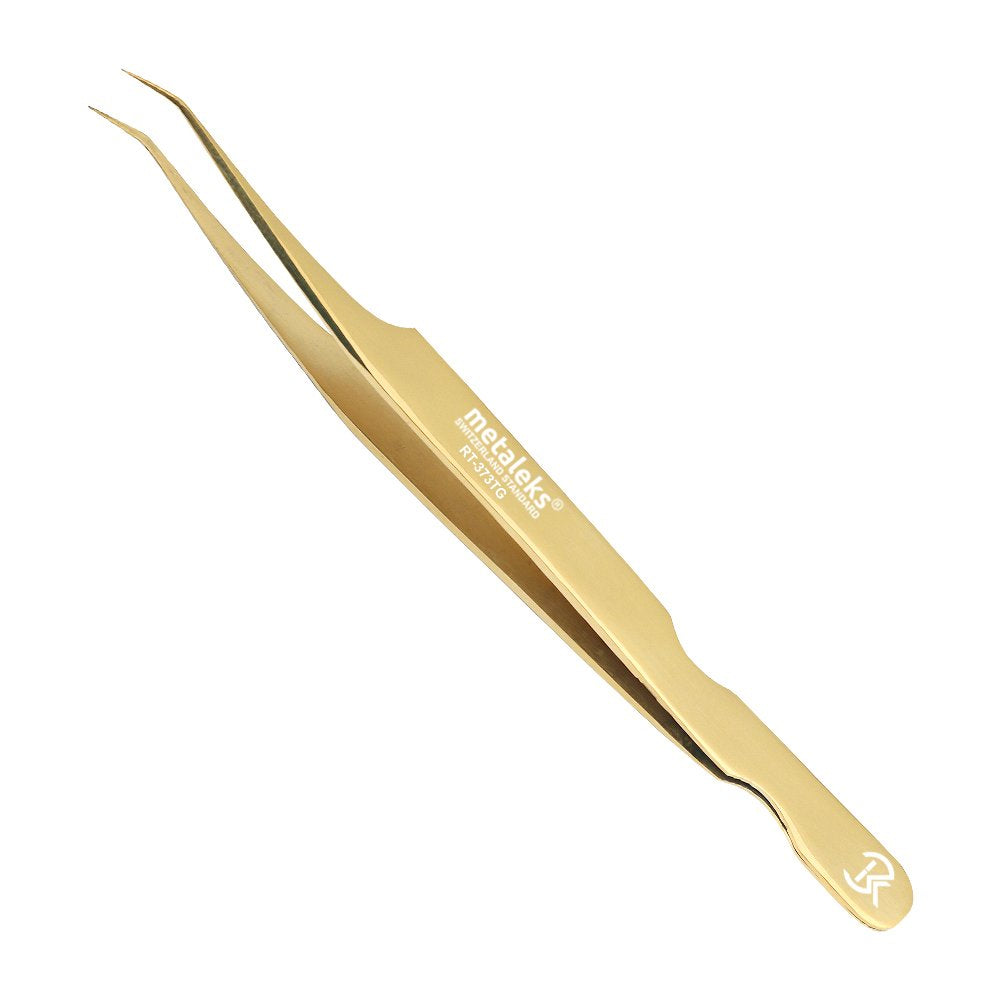 ♦ Article # RT-373TG ♦ Material: Japanese Stainless Steel ♦ Color: Golden Titanium Coated. ♦ Size: 12cm / 120mm / 4.73" ♦ This tweezer is sterilizable. ♦ Type of tip: 45° Angular Tip. ♦ Great for beauty salon and individual eyelash extensions.