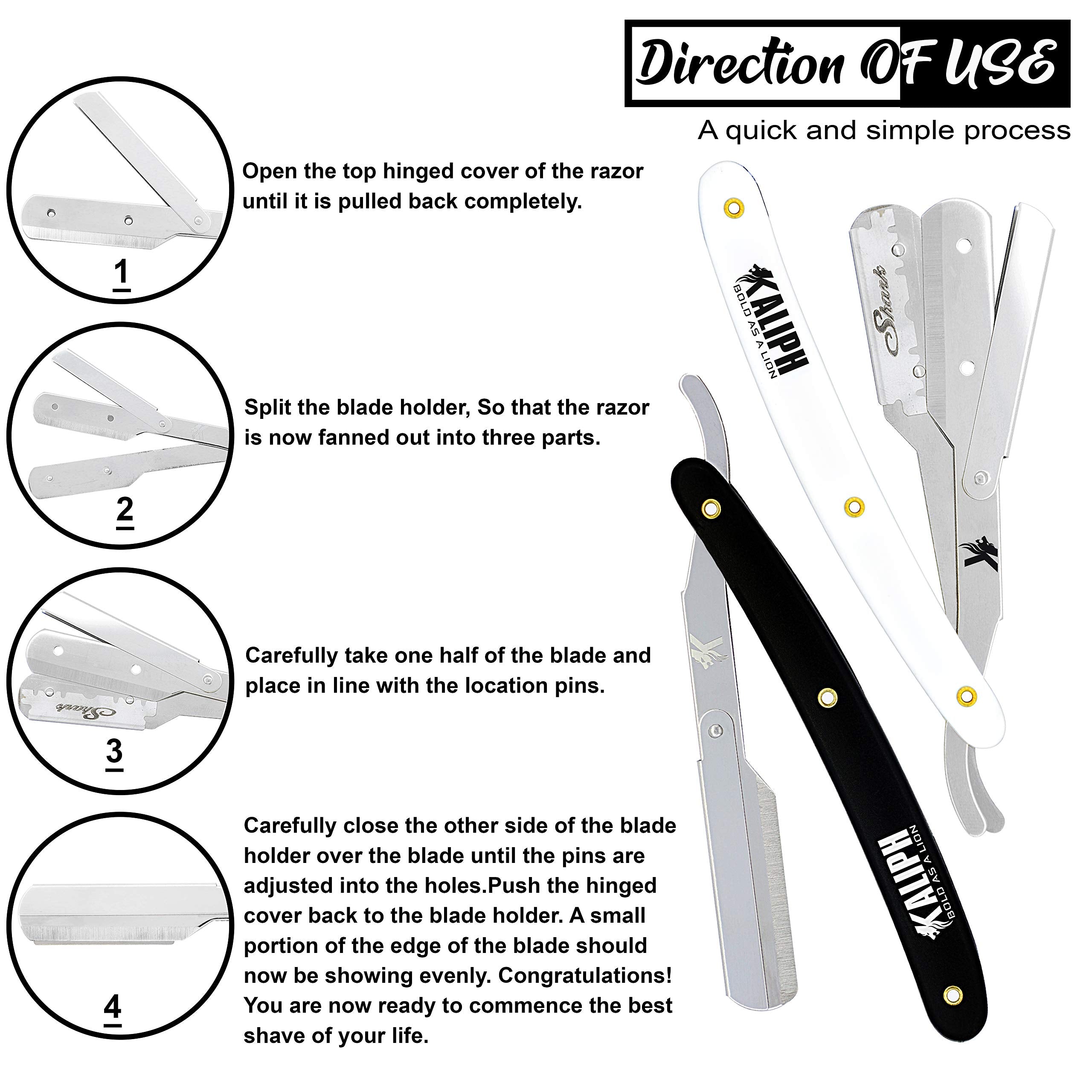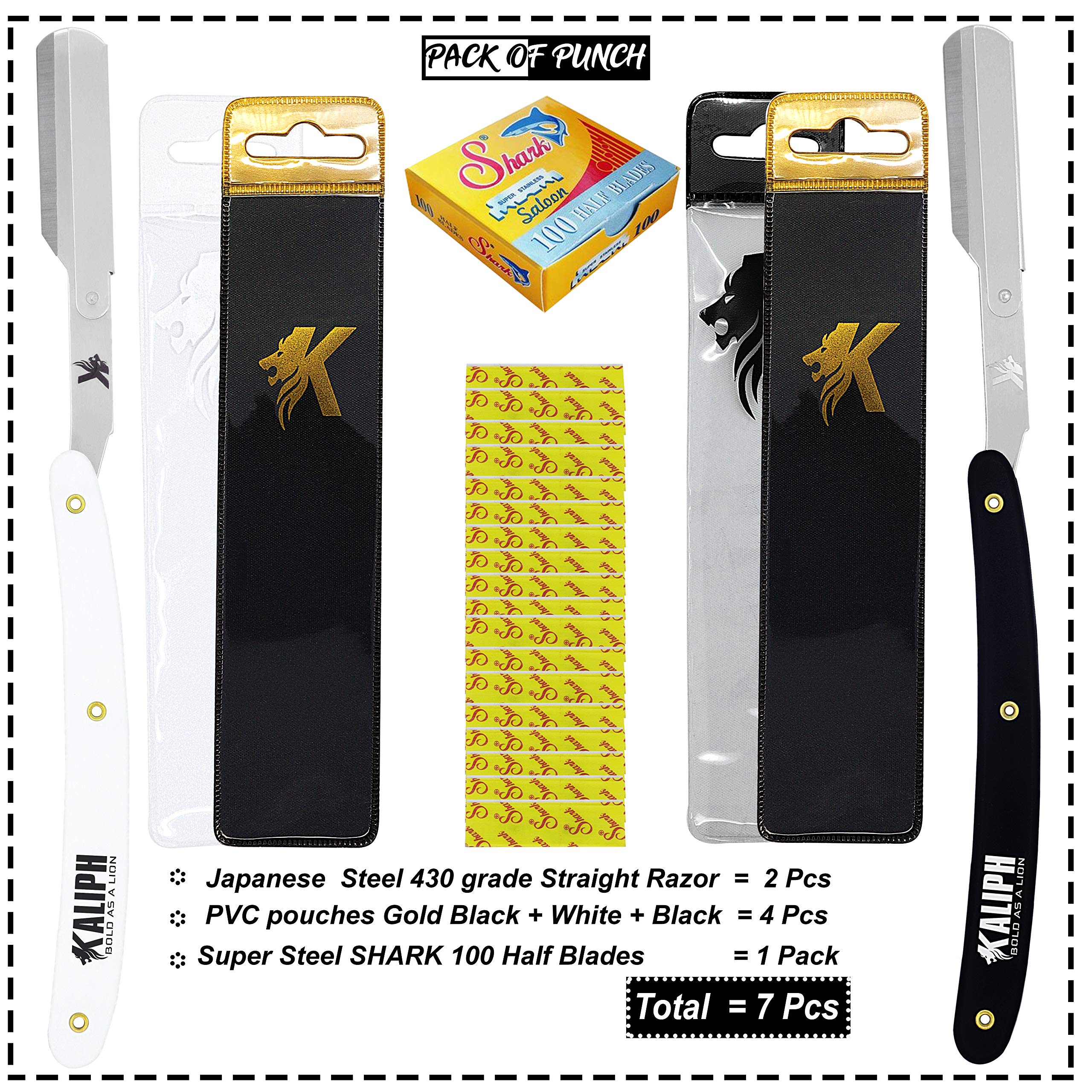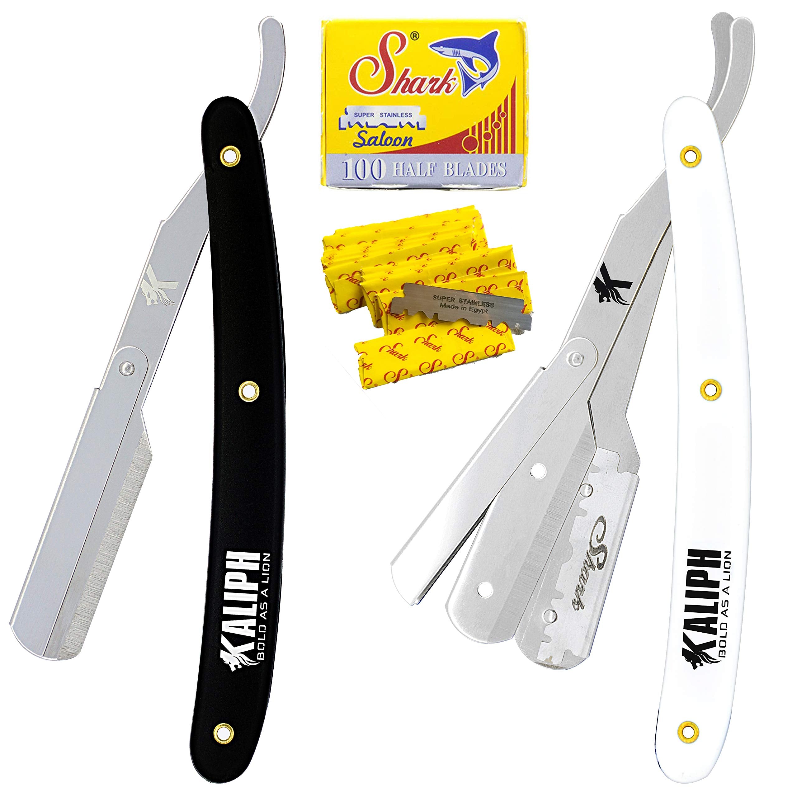 Professional Straight Razors for Men, 2Pc cutthroat straight Razor +100 Shark single edge disposable shaving Blade, Premium Straight Razor Kit for Barber Supplies. A Classic Shavette for hair to beard