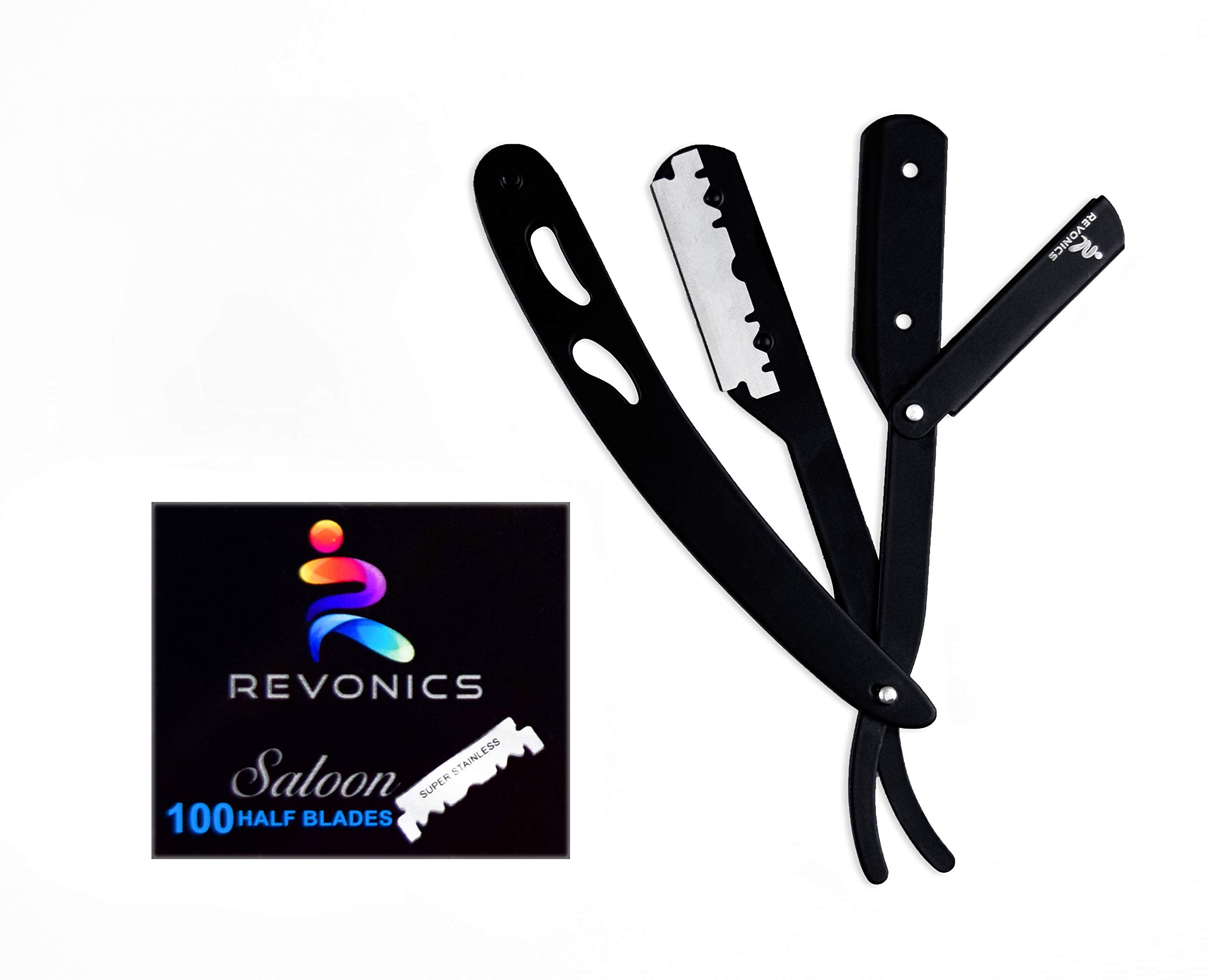 Revonics Straight Razor with 100 Shaving Blades - Straight Edge Razor for Men - Barber Razors Kit for Men - Barber Razors with Blades for Shaving - Navaja de Barbero - Single Edge Safety Razor Blades