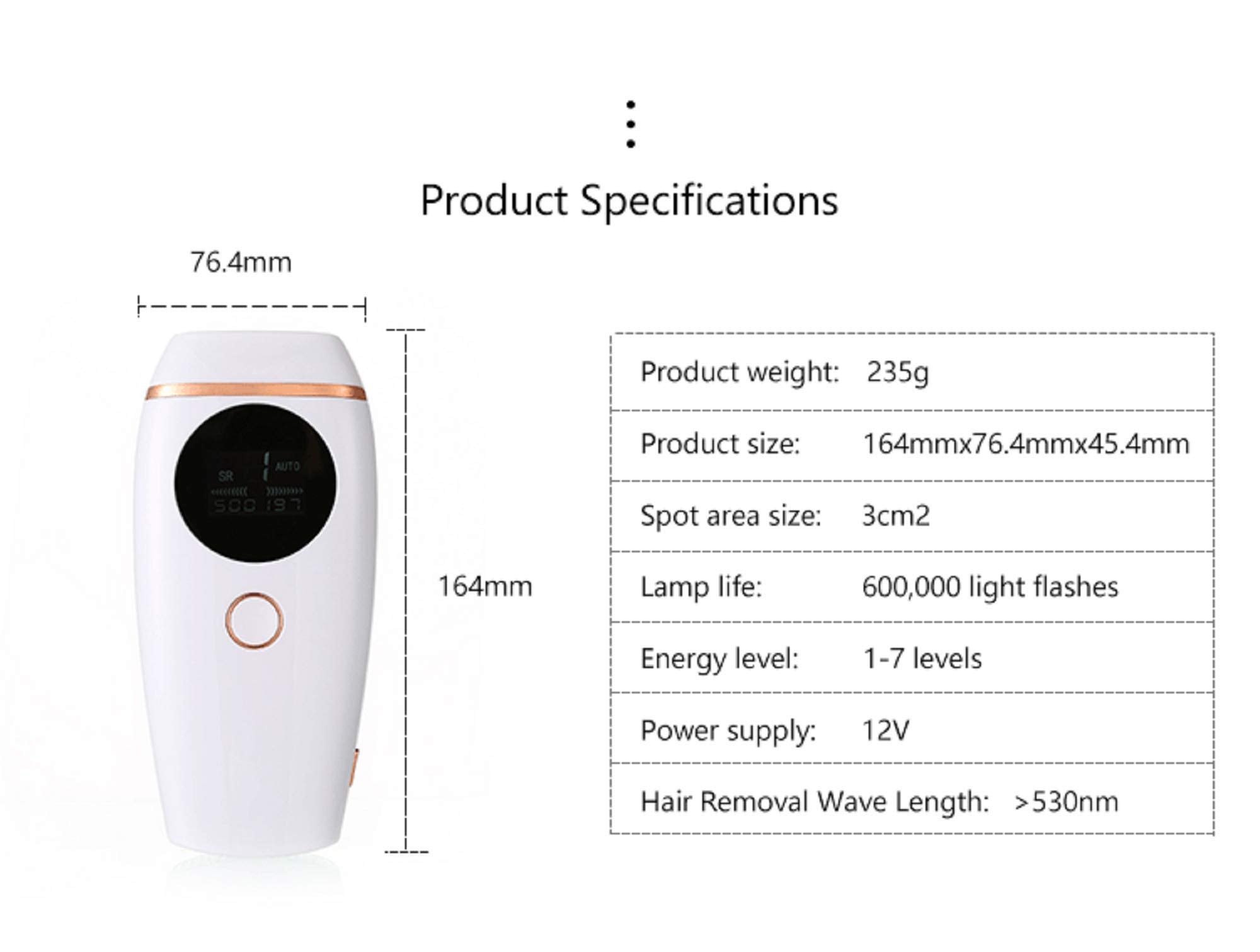 - ✅NO DISPOLISBLES REQUIRED: Hair removal device with 600,000 flashes. It is an effective & permanent light hair removal device and a lifelong purchase. Large LCD design makes it easier to see all data at a glance. And clear display of remaining number of times. Not need spending much money and time on monthly salon appointments.