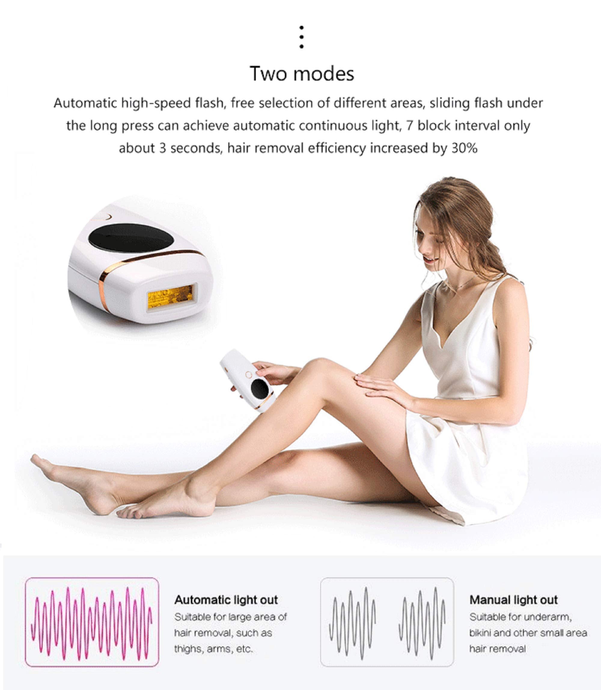 - ✅PAINLESS HAIR REMOVAL: This hair removal helps you to achieve permanent hair removal and smooth skin through breaking the cycle of hair regrowth, it is very gentle, especially for first-time users or for treating any areas, such as the face or bikini line. Automatic mode can be used in large epilating areas such as arms, legs, abdomen and back. 4.5cm Big flash window can help you remove hair quickly and save your time effectively. Treats your lower leg in just 5-8 minutes