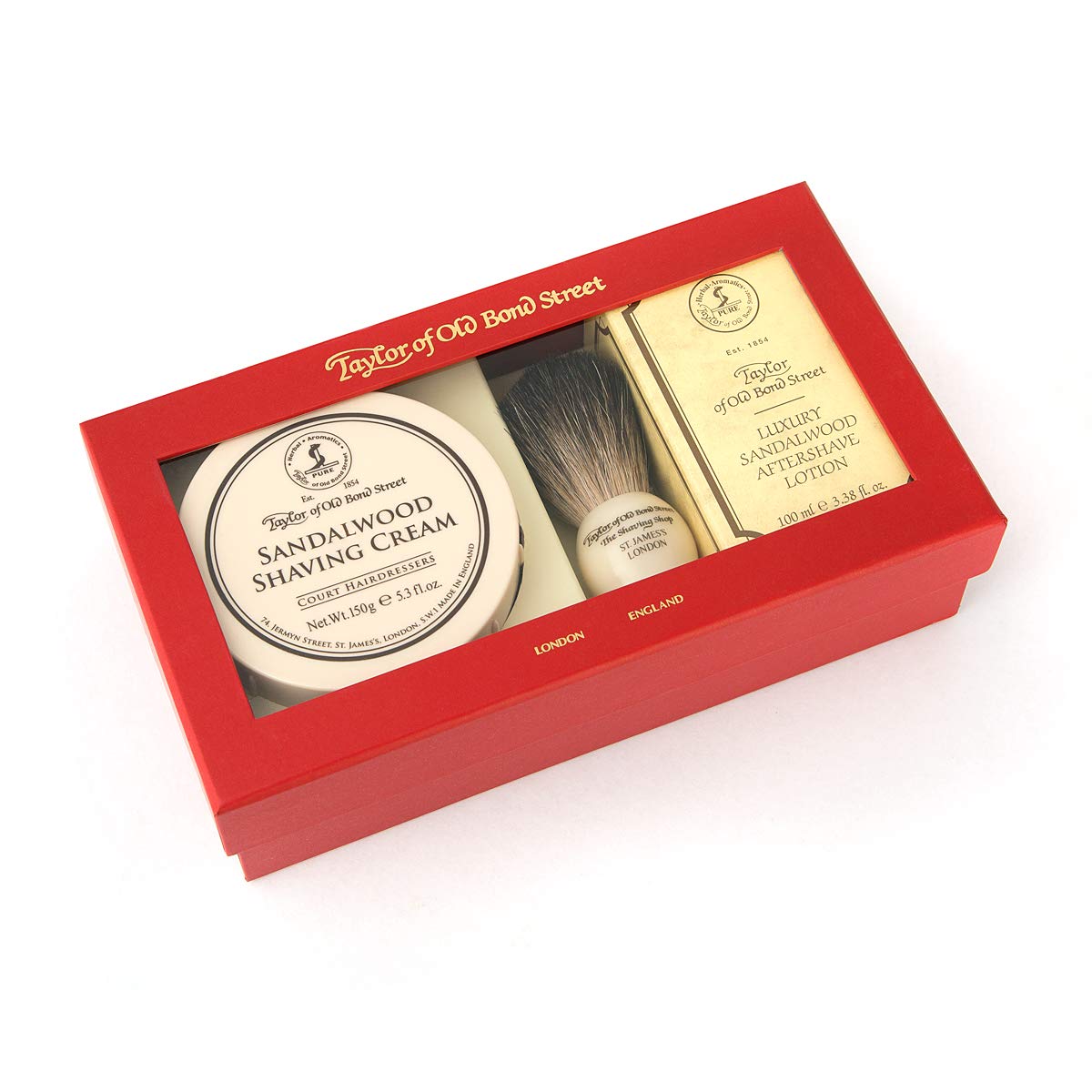 Taylor Of Old Bond Street Shaving Sandalwood Brush,Sandalwood Shaving Cream Bowl 150g and Sandalwood Aftershave 50ml Set