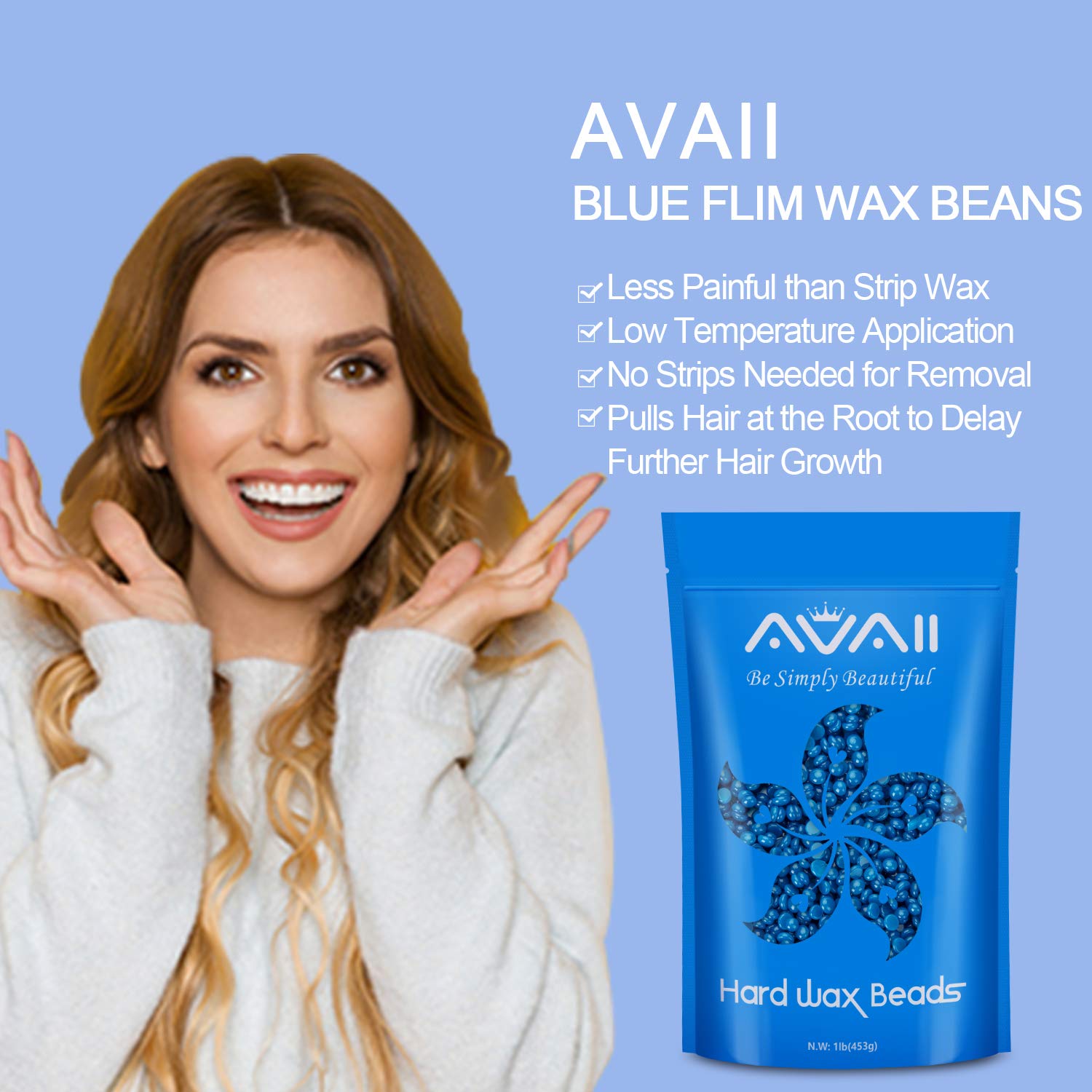 Wax Beans AVAII Hard Wax Beans Painless Hair Removal for Coarse Hair Refill Waxing Beads for Underarms, Leg, Chest, Brazilian Bikini, Perfect for Any Wax Warmer, 453g/16oz.