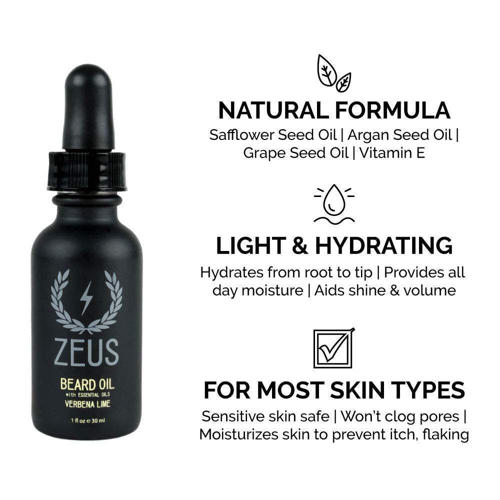 ZEUS Essential Beard Oil Kit - Best Starter Set for Softer Hair and Itch Free Skin (VERBENA LIME)