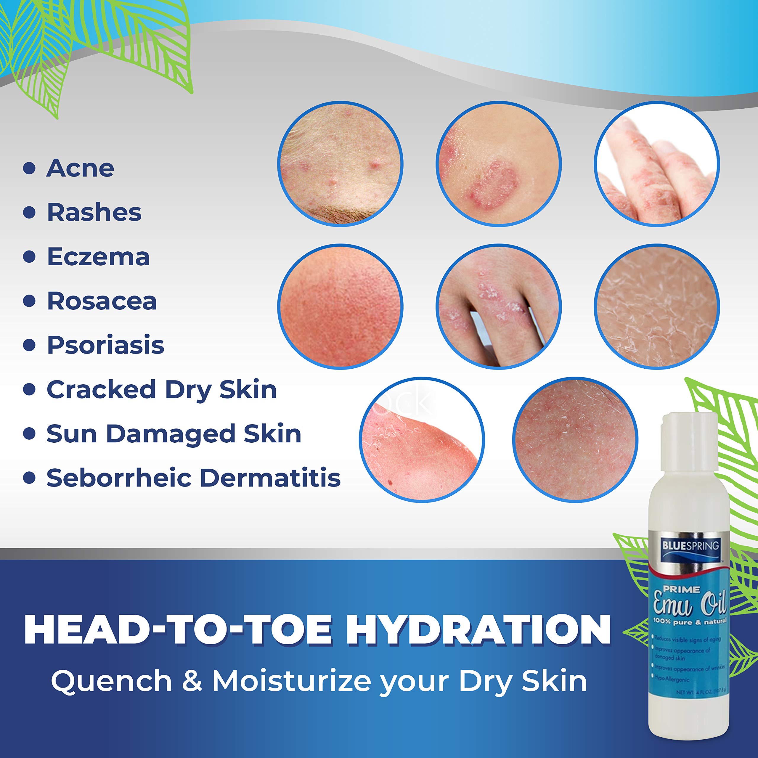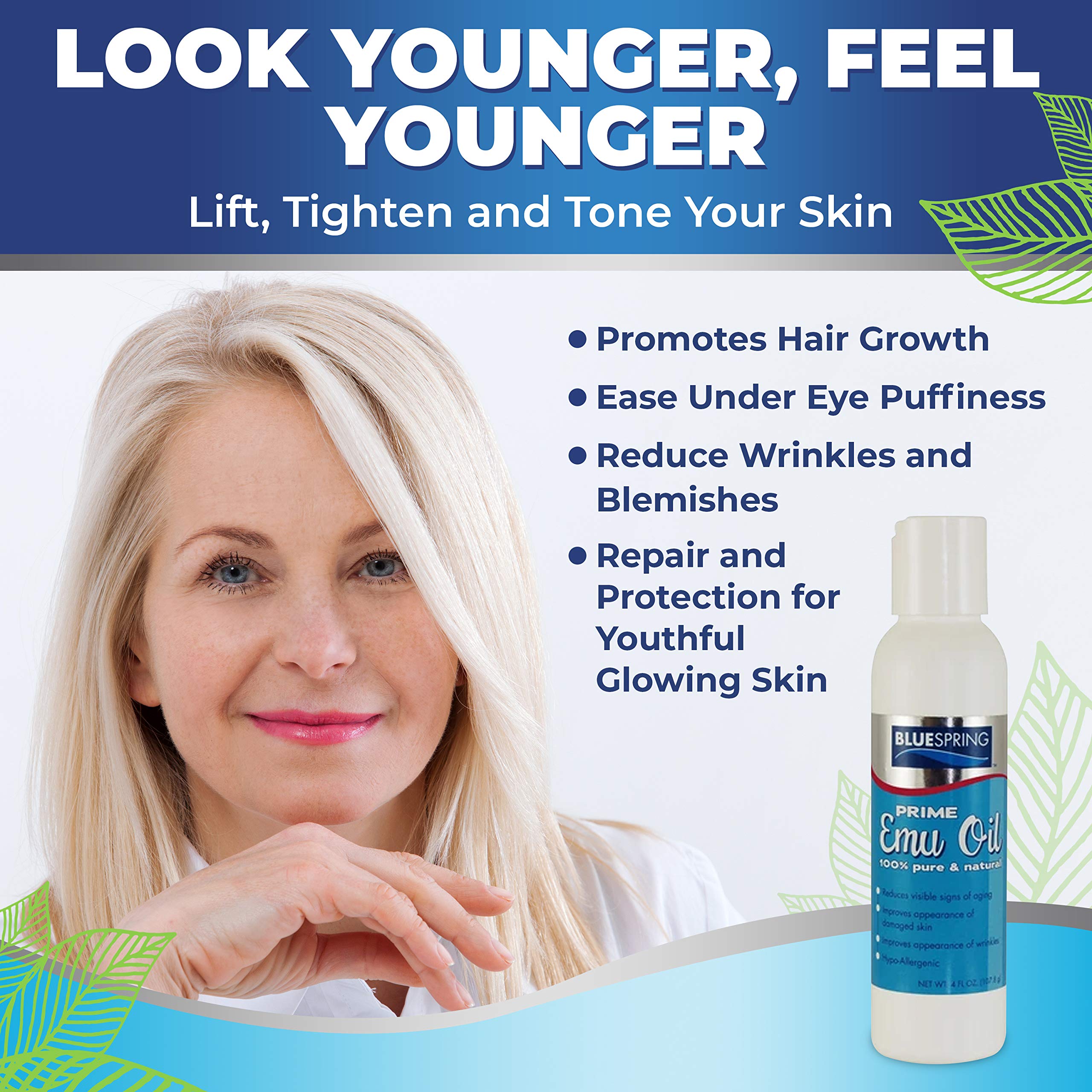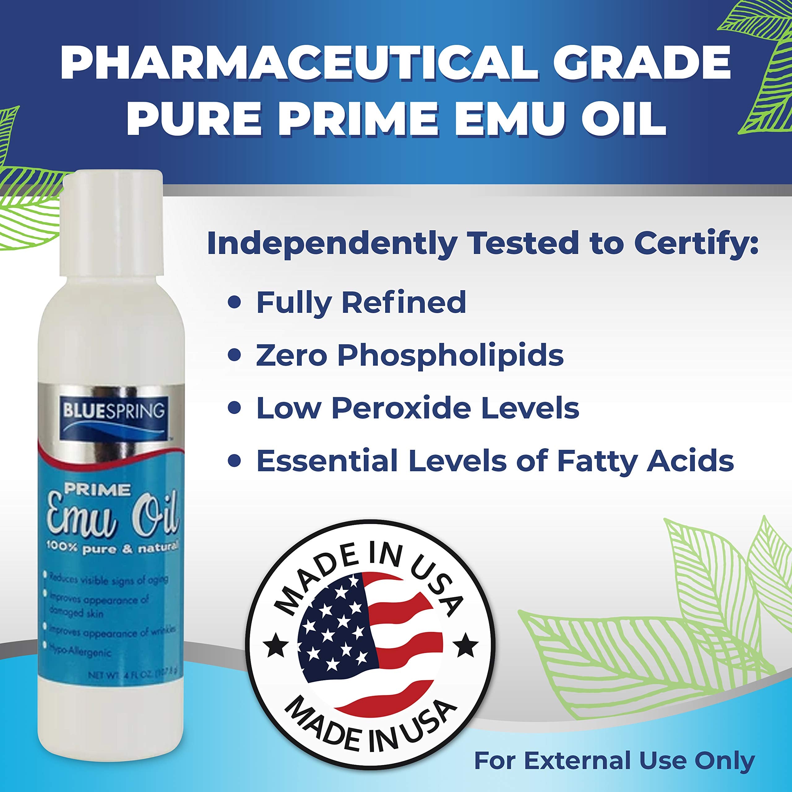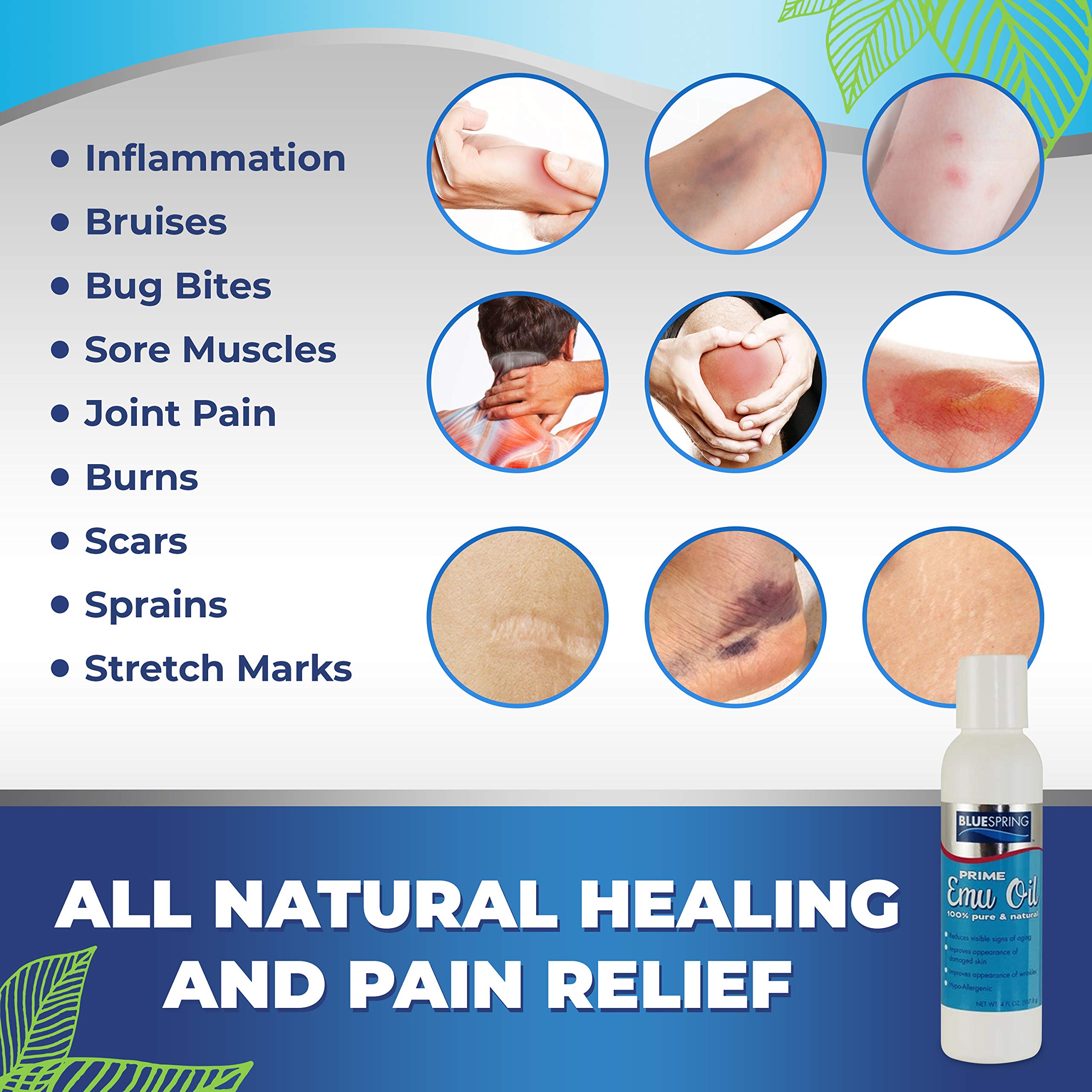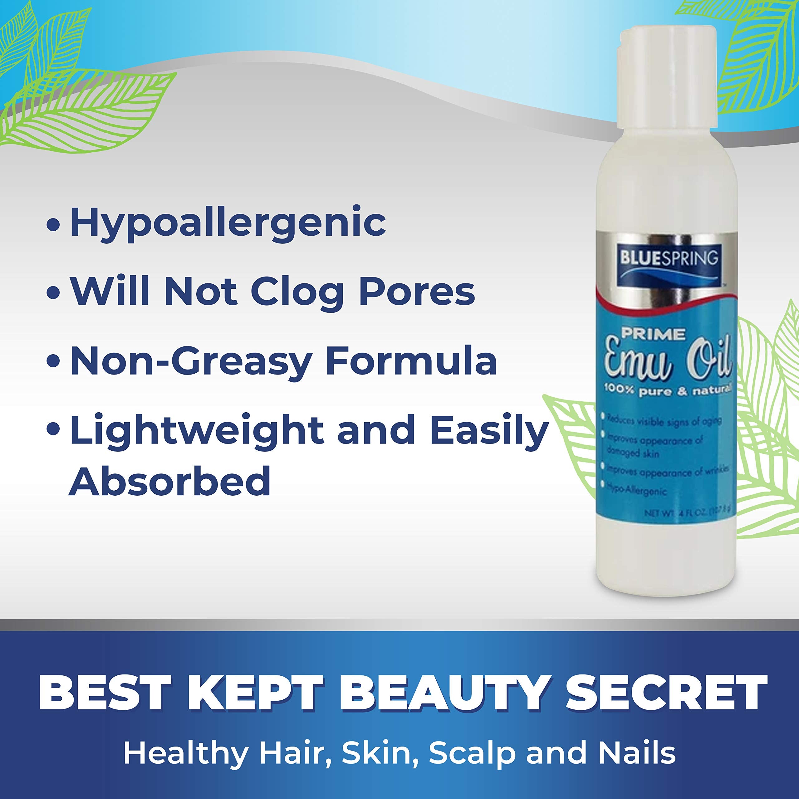 BLUE SPRING Pure Prime Emu Oil For Muscles And Joints - Fast Action Pain Relief For Men And Women - Aromatherapy Healing Deep Tissue Massage - Natural Anti Aging Anti Cellulite Formula (4 oz) by Blue Spring Store