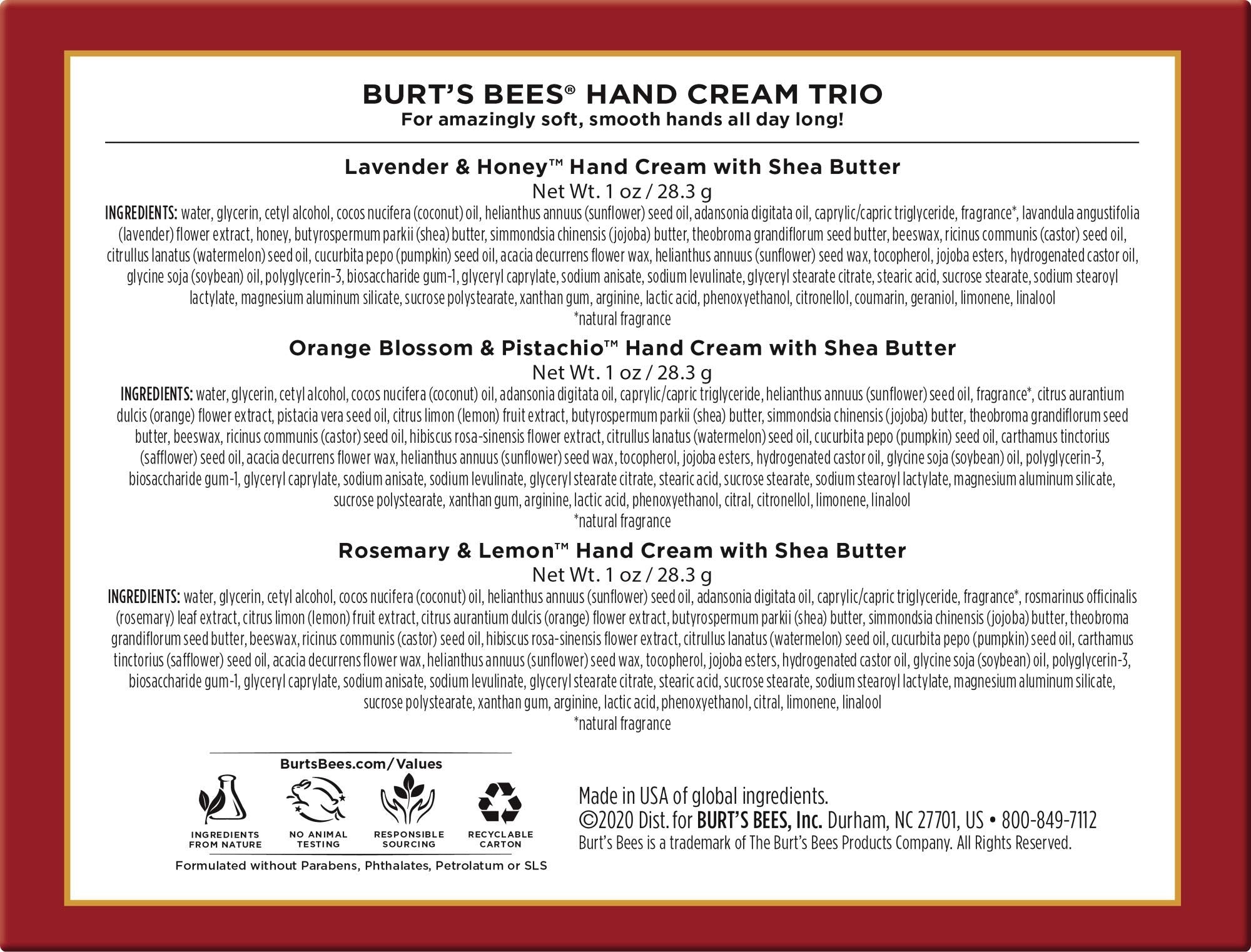 Burt's Bees Hand Cream Trio Gift Set, Shea Butter Hand Creams, Lavender & Honey, Orange Blossom & Pistachio and Rosemary & Lemon