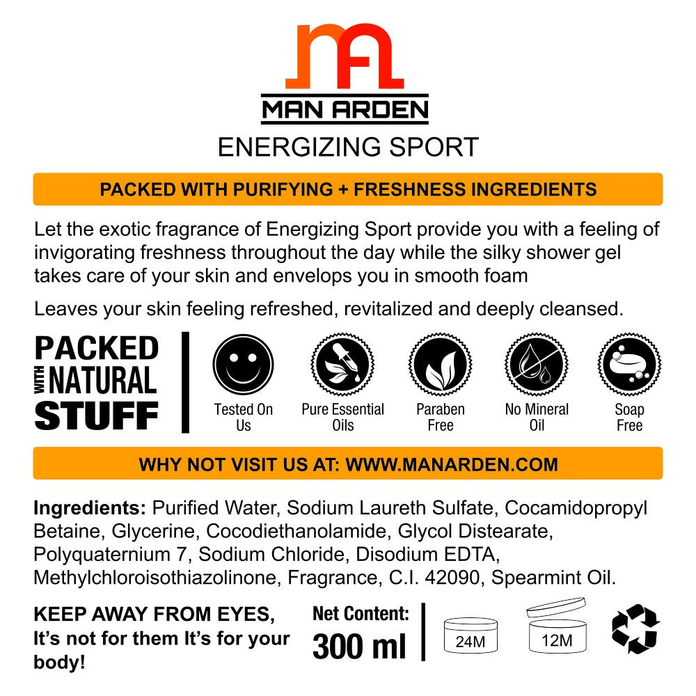 Man Arden Energizing Sport Shower Gel - Spearmint Oil Body Wash, 300 ml / 10 fl oz