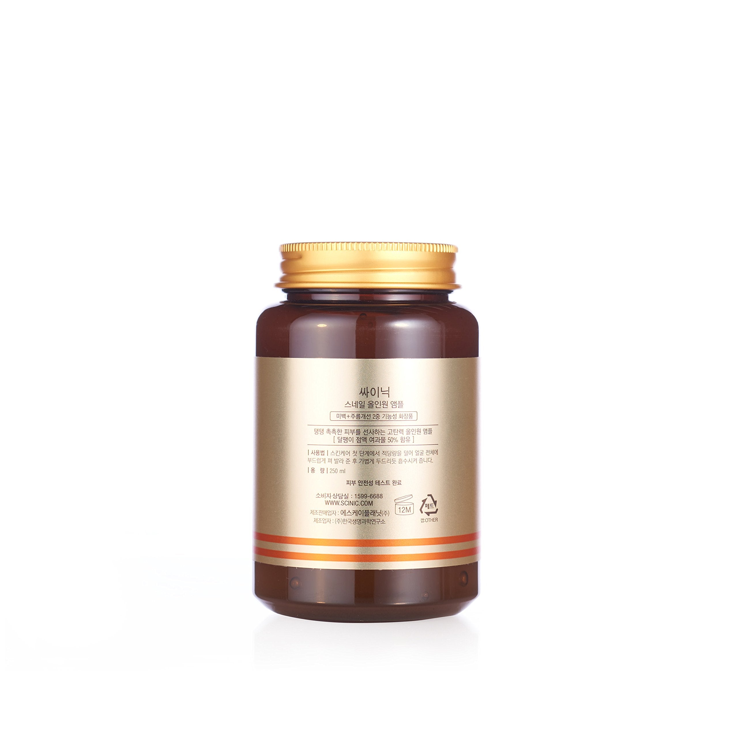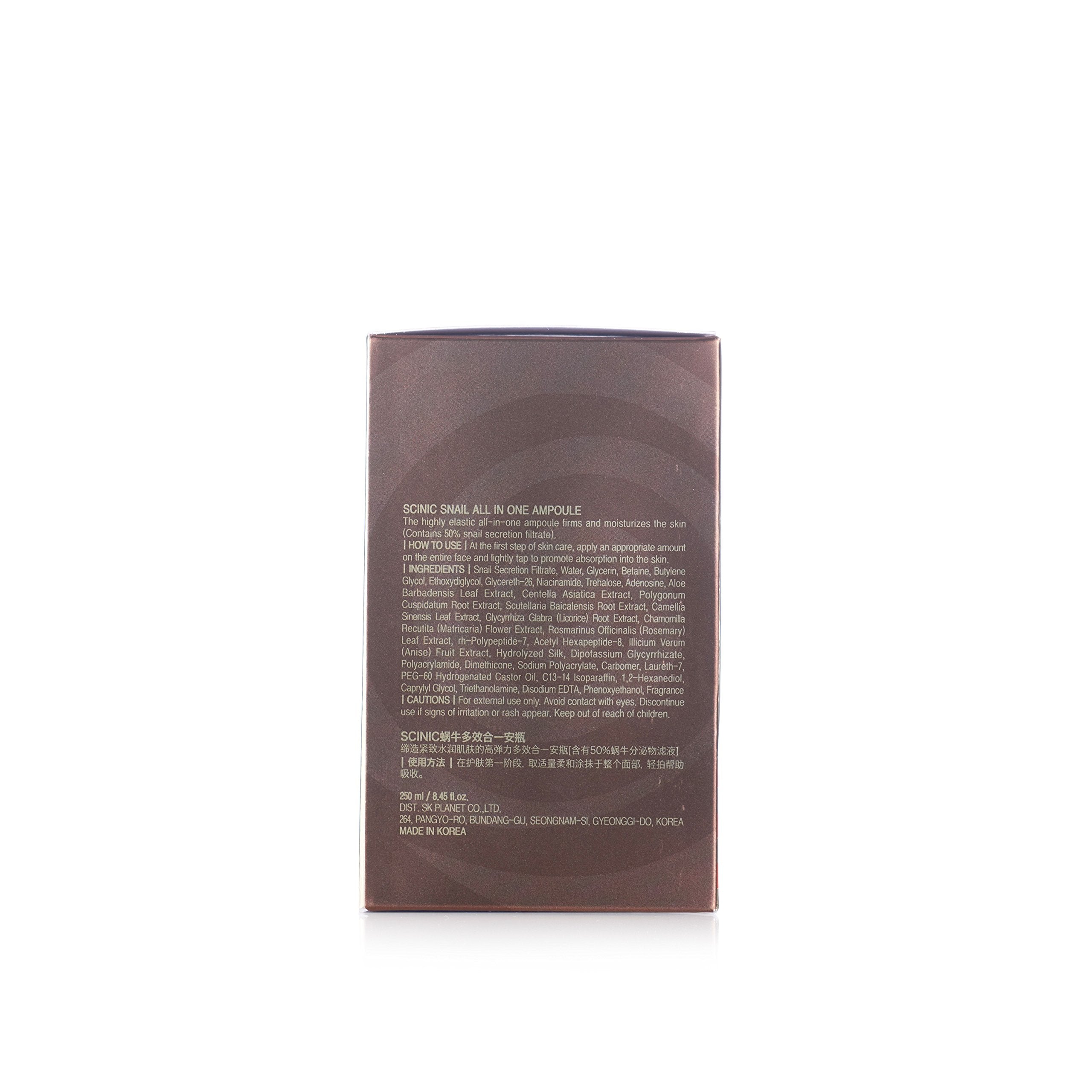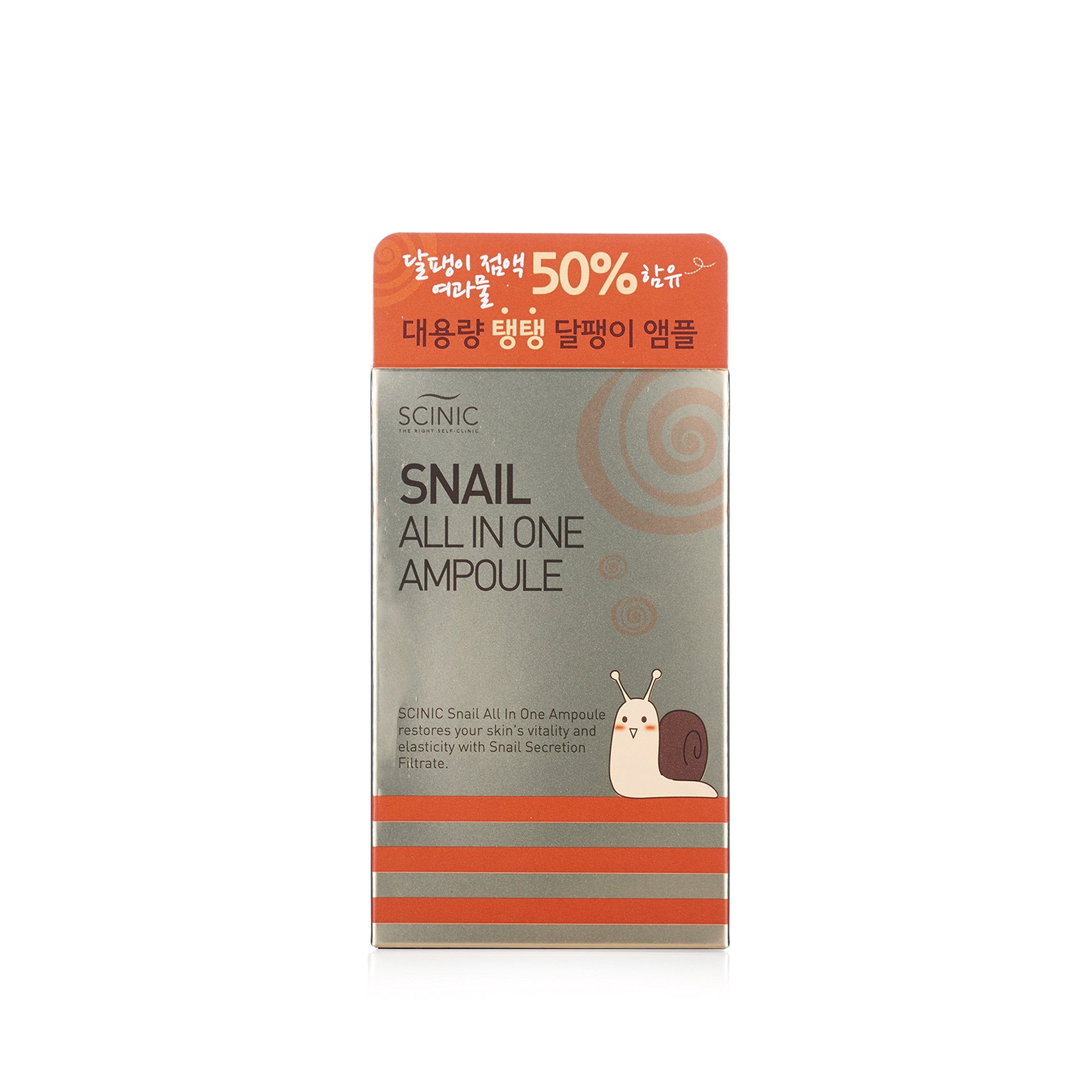 Snail All In One Ampoule. Honey, royal jelly, and propolis extract contained. Softly spread the ampoule on your face and neck. This product is manufactured in Korea.