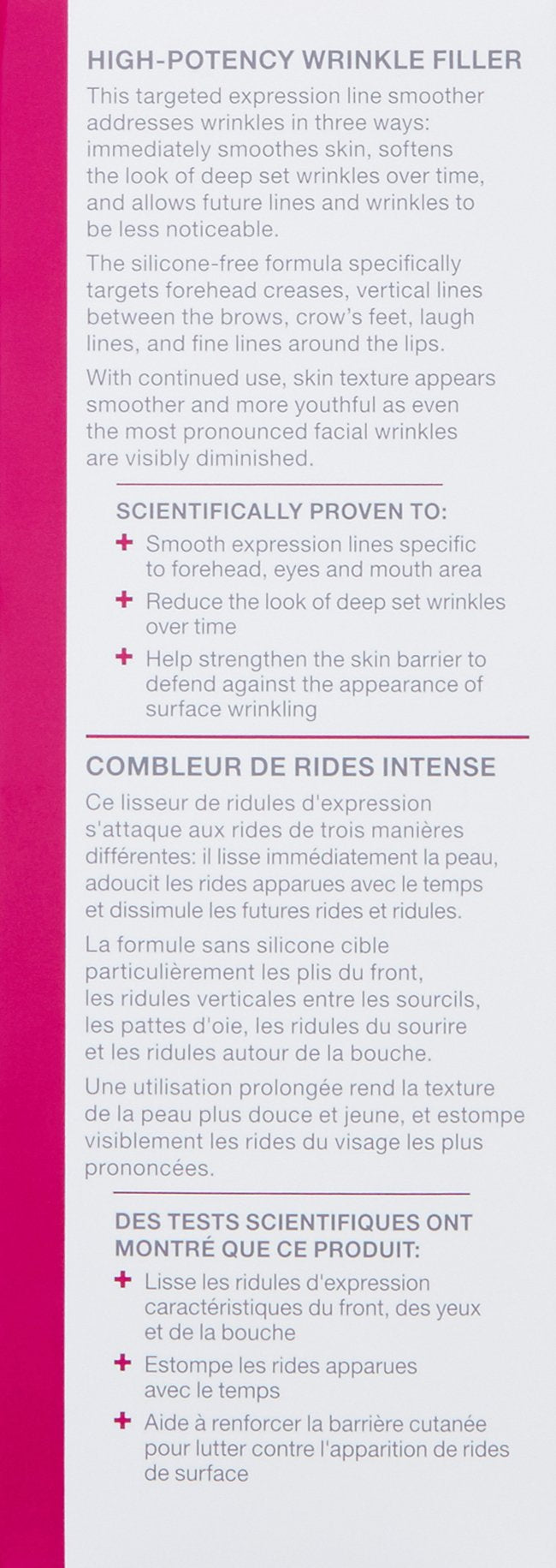 The silicone-free formula was designed specifically to work on the appearance of forehead creases, vertical lines between the brows, crow's feet, laugh lines, and fine lines around the lips. Skin appears more radiant and luminous.