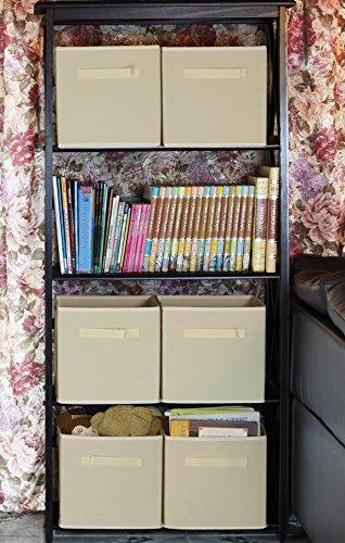 6 Pack - SimpleHouseware Foldable Cloth Storage Cube Basket Bins Organizer, Beige