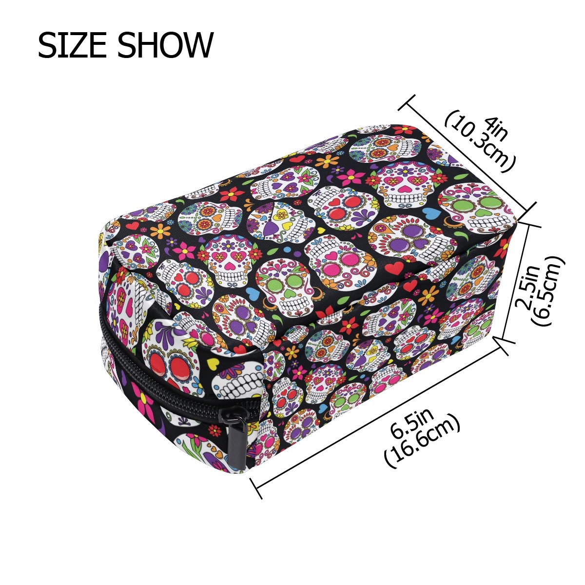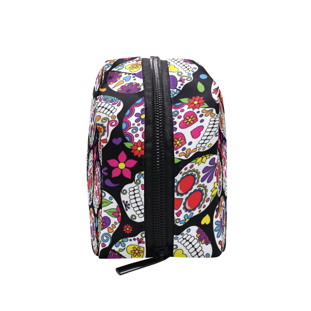 ALAZA Day Of The Dead Sugar Skull Cosmetic Bag Black Zipper Storage Bag Portable Ladies Travel Square Makeup Brushes Bag
