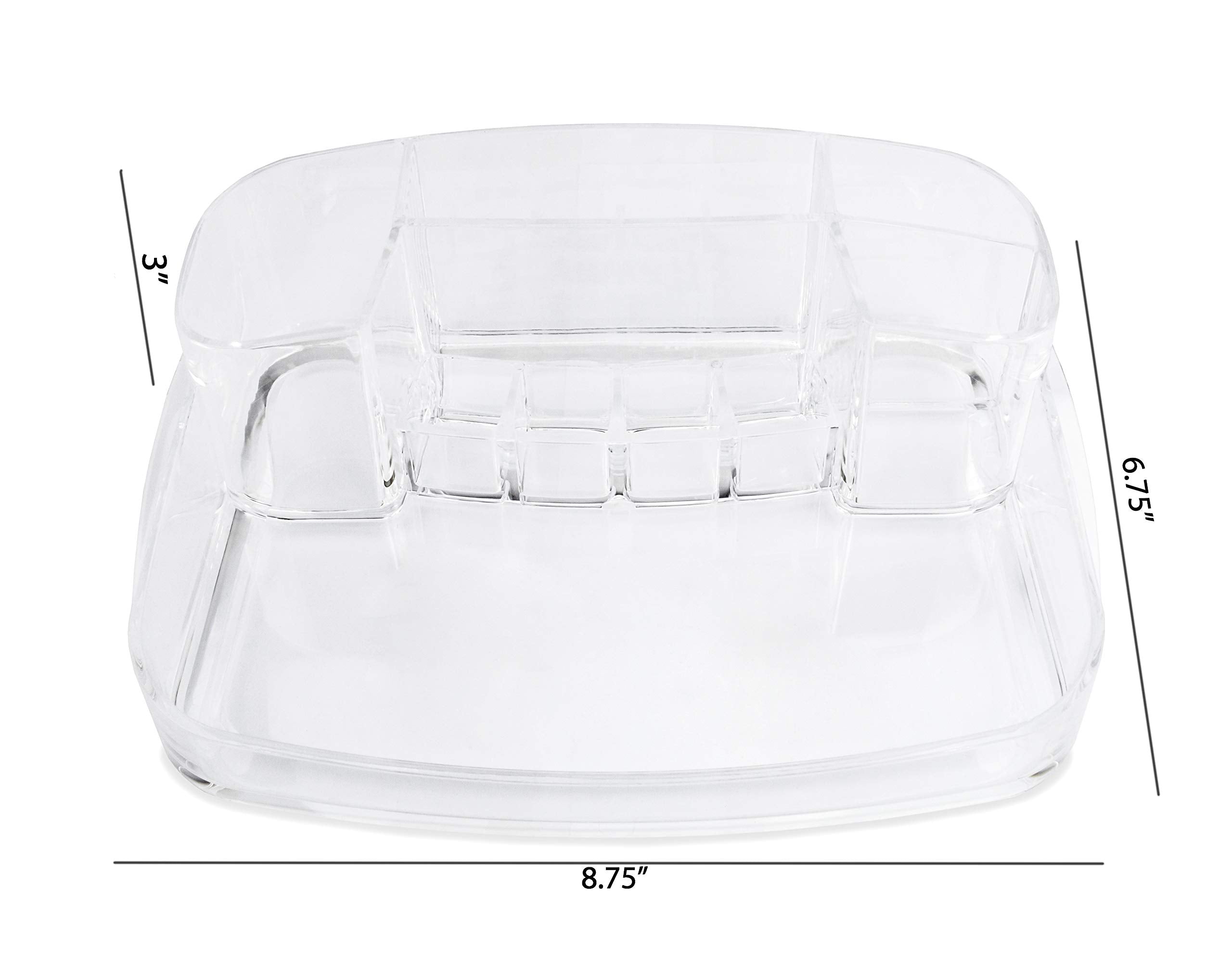UNIVERSAL: Our Clear Beauty & Skincare Organizers Are The Perfect Holders For Your Home Or Office. They Provide Alot Of Space & Will Provide A Neat & Organized Look. DURABLE: Made Of High Durability Clear Acrylic, Will Not Lose Its Color Over Time. Solid Construction, Built To Last. CONVENIENT: This Lucite Tray Can Organize Your Vanity & Provide Organization In Many Spaces. In Addition To Holding All Your Cosmetics, You Can Also Use This Organizer As A Convenient Jewelry Holder Too. COMPACT: Takes up Minimal Space & Keeps All Your Beauty Essentials At Your Fingertips. CLEAN LOOK: Keep all your makeup organized and your bathroom looking clean and tidy with an Artistic Home Cosmetic Organizer. CONVENIENT COMPARTMENTS: Keep all your liners in one section, shadows in another section and blushes in a different section, as this organizer features many individual compartments.