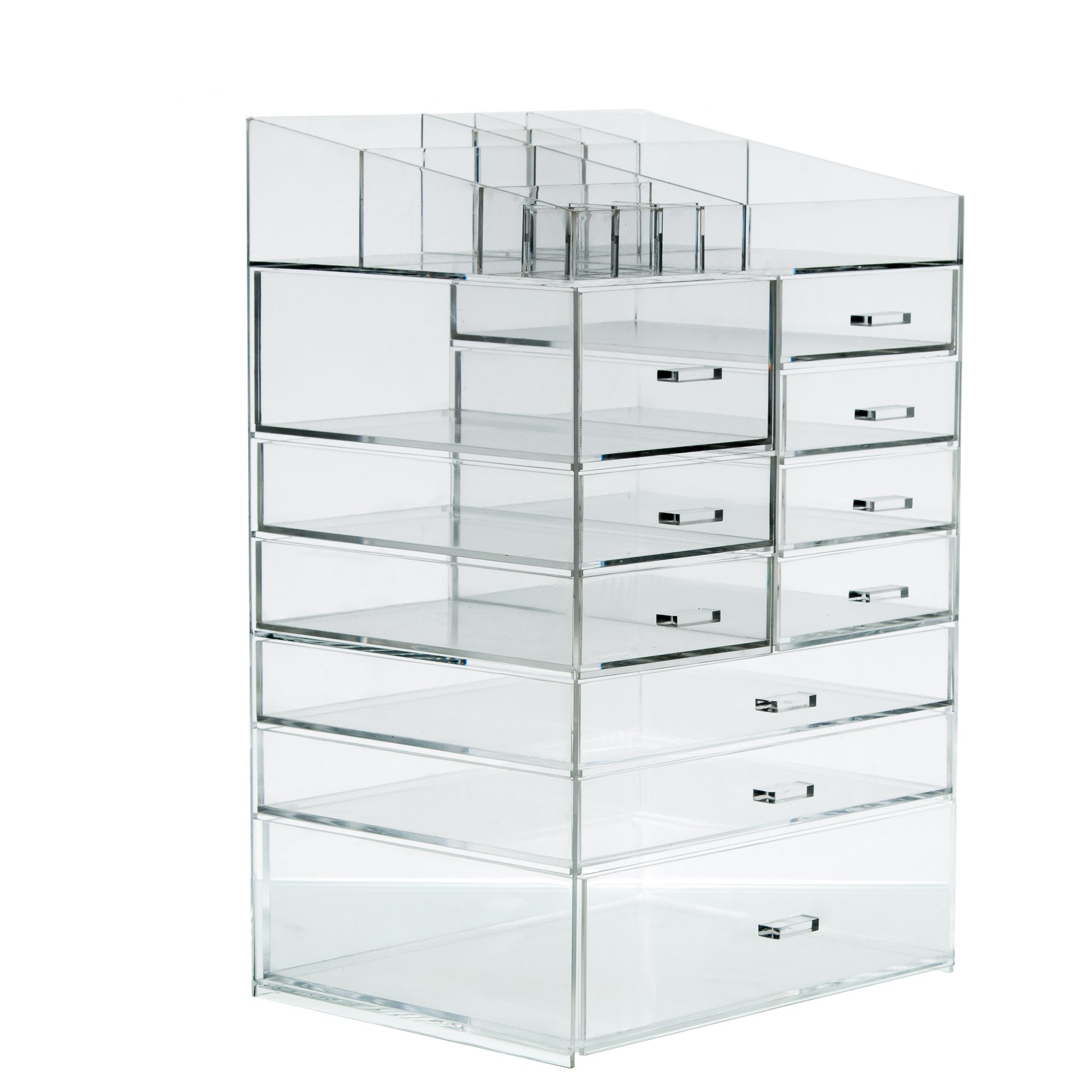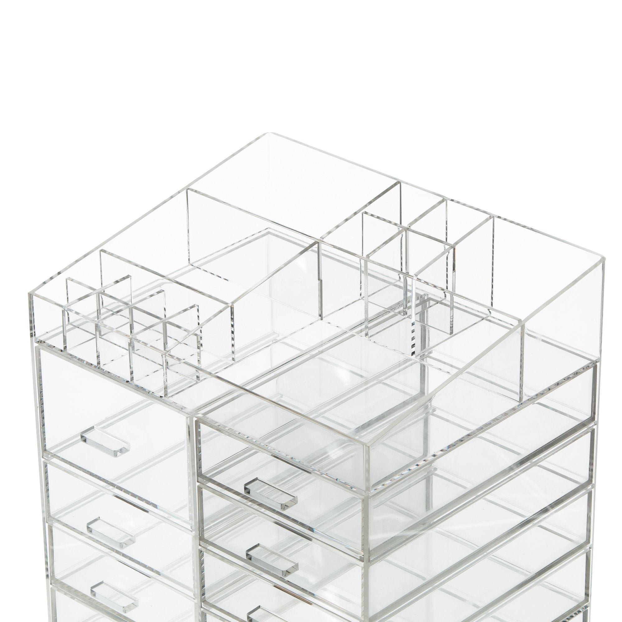 Cq acrylic Extra Large 8 Tier Clear Acrylic Cosmetic Makeup Storage Cube Organizer with 10 Drawers. The Top of The Different Size of The Compartment Suitable for Storing Lipstick and Makeup Brush