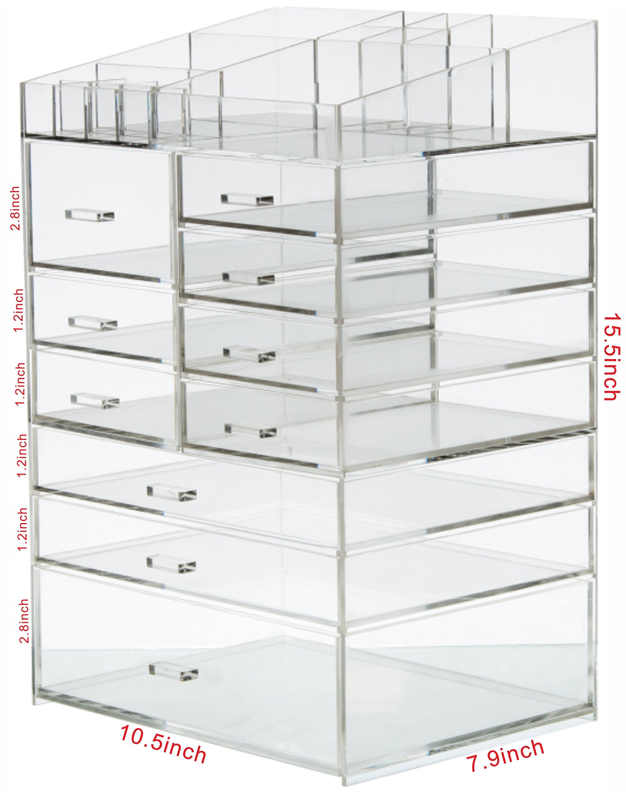 **Use the best cosmetic organizers to organize your room and bathroom today** When you have a lot of makeup and jewelry, you know firsthand how hard it can be to organize it all and keep it together and handy when you need it. Thankfully, the Cq acrylic Acrylic Cosmetic Box is here to give you the best of worlds in one beautiful and stylish storage case. Designed to hold all your favorite makeup accessories and your best jewelry, the universal Cq acrylic Acrylic Cosmetic Box offers more storage and more convenience than your average jewelry box or cosmetic case. Featuring 5 large pull out drawers , you'll never again have to search for your lipstick, blush, or wedding right all over the house or bathroom. **Features and benefits:** Makeup Organizer Size:10.5"x7.9"x15.5" 10 Drawers with Free with open top, adapted to different cosmetics / accessories Holds Makeup, Lipstick, Makeup Brushes, Jewelry ,accessories and More Easy Grip Handles Cleans Up Easily with Warm Water and a Wash Cloth **Click "Add to Cart" above and get yours today!**