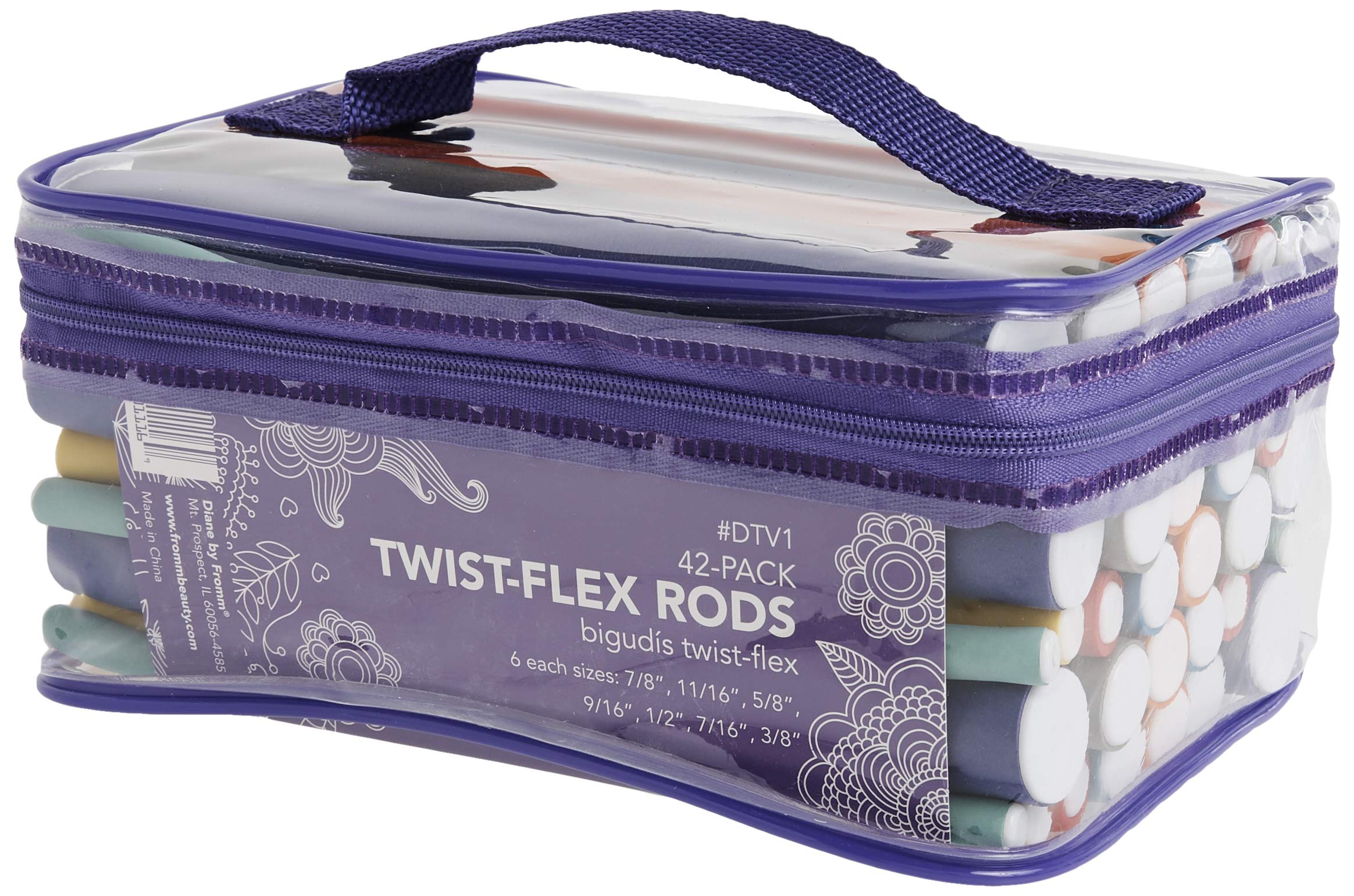 Diane Twist-Flex Rods – Pack of 42 Assorted Hair Rollers for Women and Girls – Reusable Zip Pouch for Storage - Small, Medium, Large – Purple, Gray, Orange, Blue, Red, Yellow, Green – DTV2