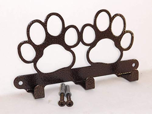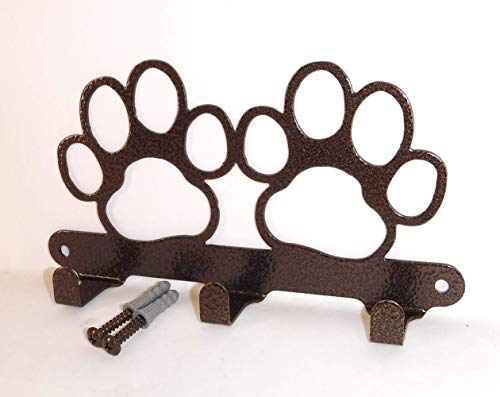 Double Dog Paw Leash Hook. Solid Steel. Handmade in USA. Copper vein Finish
