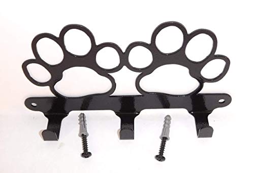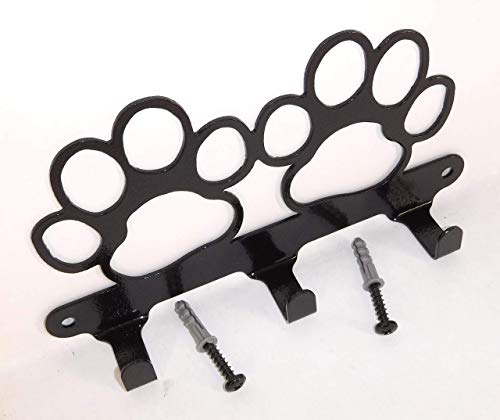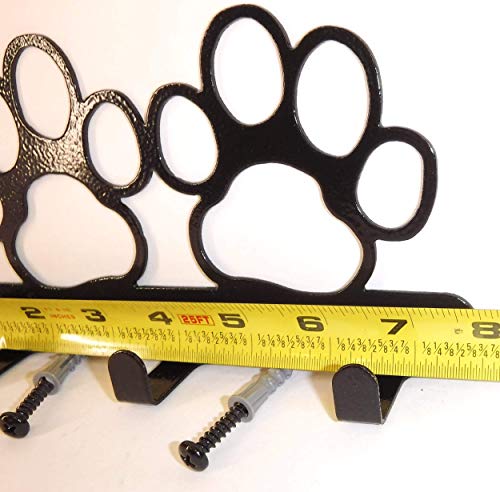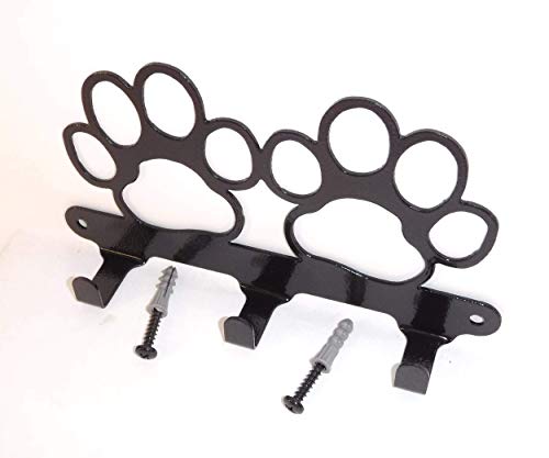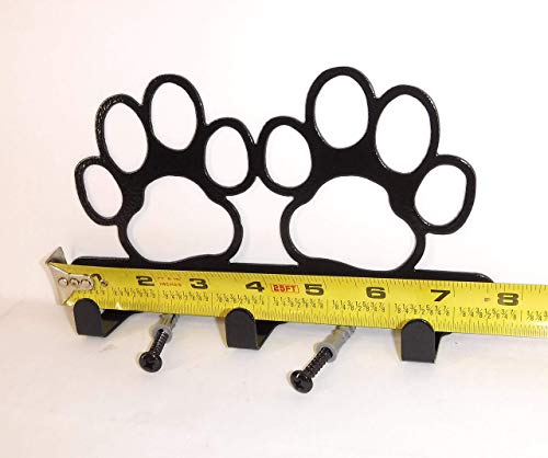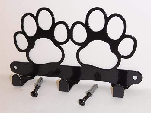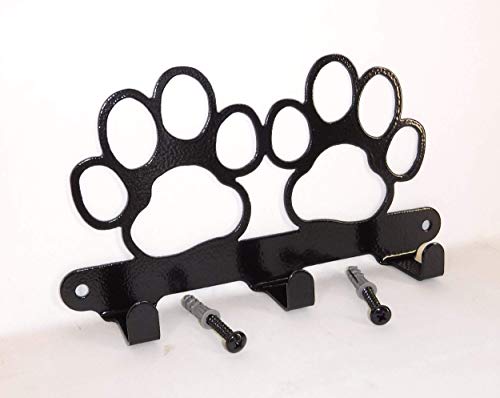 Double Dog Paw Leash Hook. Solid Steel. Handmade in USA. Gloss Black Finish