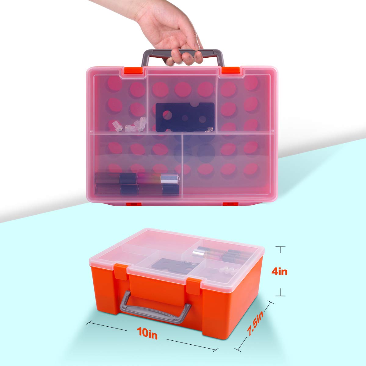 - Essential Oil Storage Box with Great Design: Essential oils case adopts a two-layer design to classify and store essential oil set and accessories, which is convenient for ffinding and using. Carrier oil for essential oils can also keep the essential oil pack clean. The transparent design of essential oils storage case allows you to quickly and easily find the essential oil bottle you need.