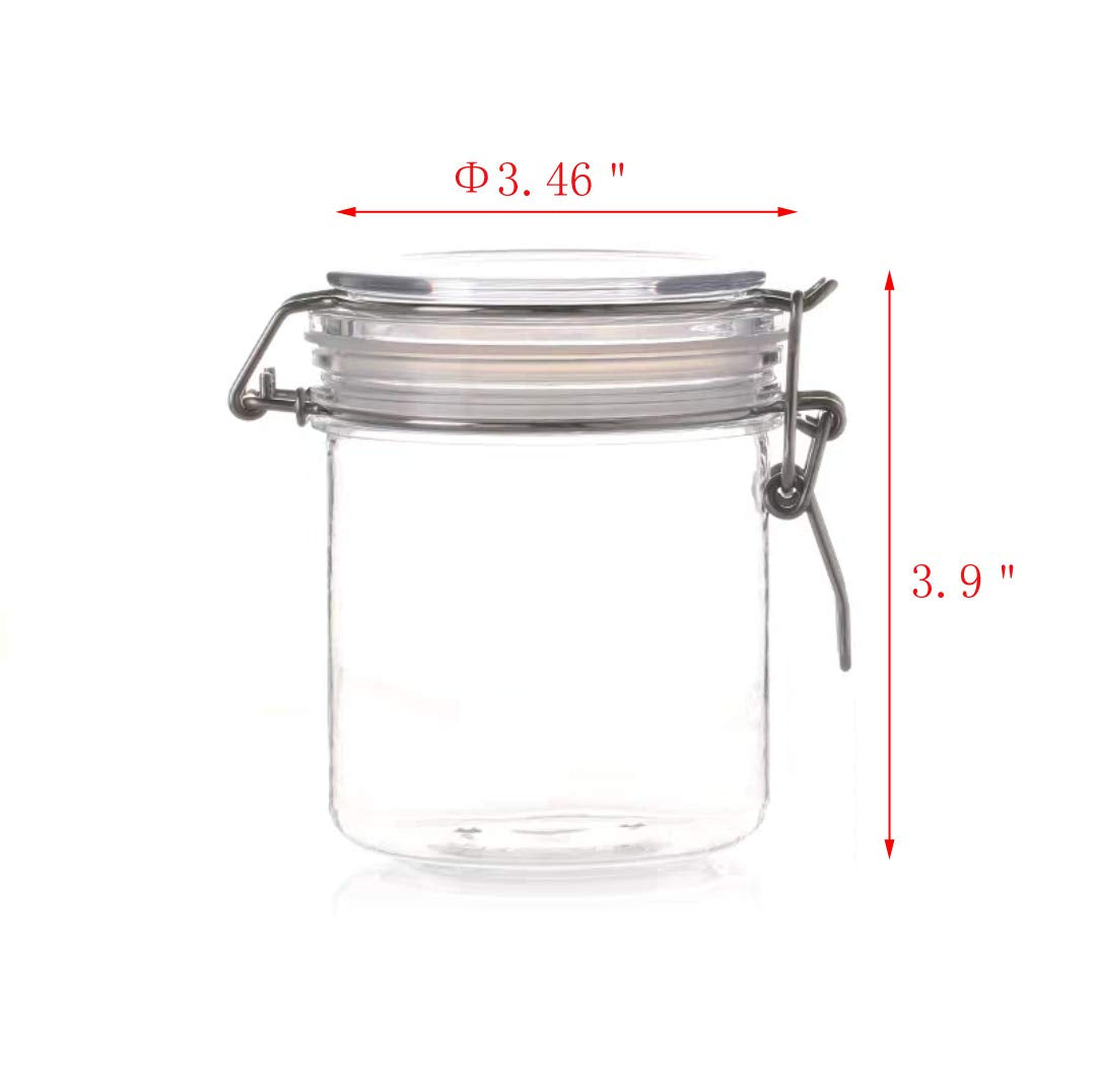 Fixture Displays Wire Clasp PET Jar 450 ml Spice Jar Seal Paint Jar Oil Storage Plastic Mason Jar 18615-450ML . This Hermetic Sealed Plastic Jar is great for storage of cereals, coffee beans, tea leaves, macaroni, nuts, sweets, kitchen spices, etc. Product max diameter 3.46". Total height is 3.93". Capacity...