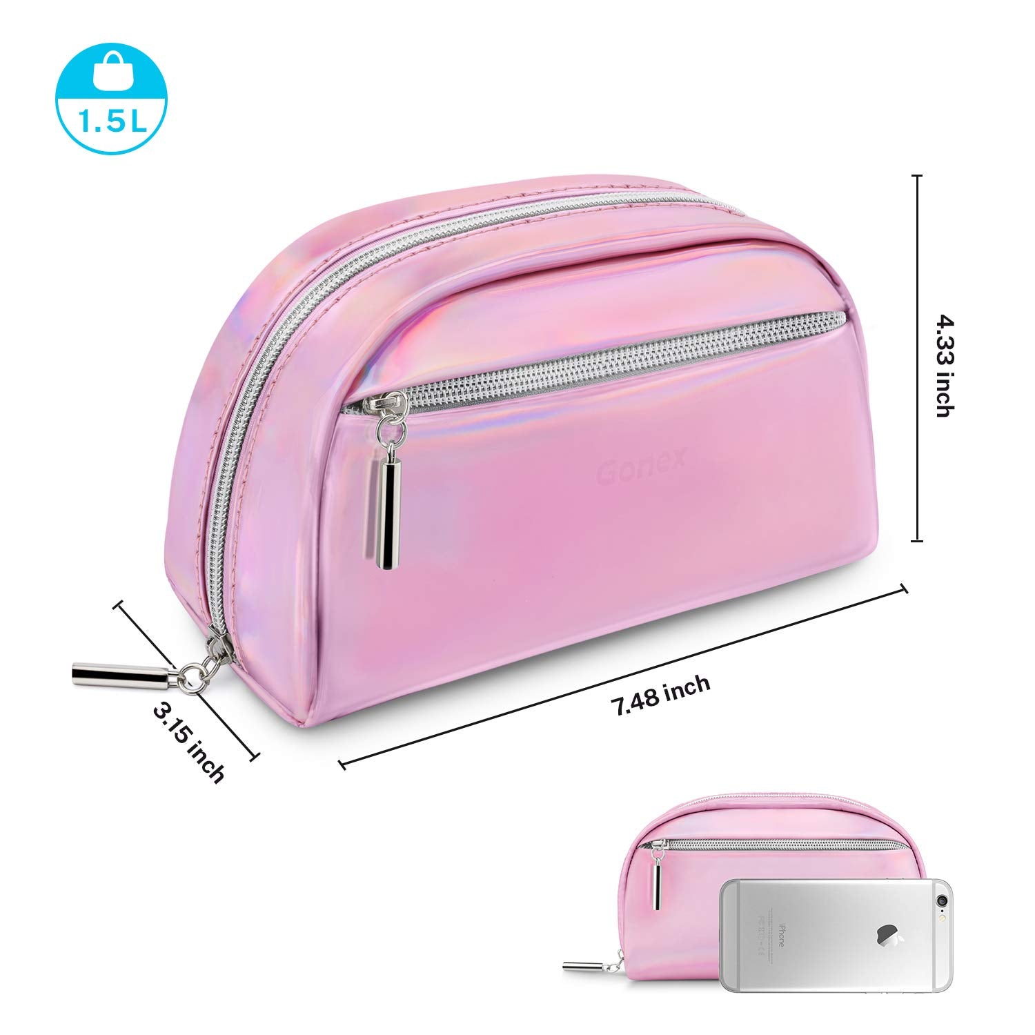 Gonex Small Makeup Bag for Purse Metallic Silver Cosmetics Bag PU Leather Travel Pouch for Women Girls Gifts Portable Water-Resistant Daily Storage Organzier, Pink