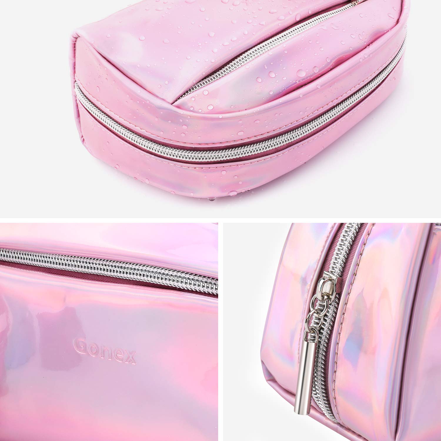 Gonex Small Makeup Bag for Purse Metallic Silver Cosmetics Bag PU Leather Travel Pouch for Women Girls Gifts Portable Water-Resistant Daily Storage Organzier, Pink by Gonex Store
