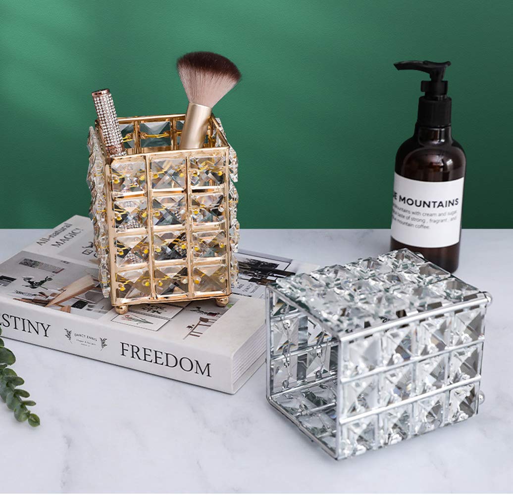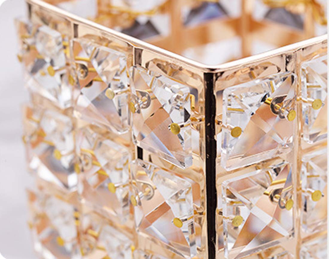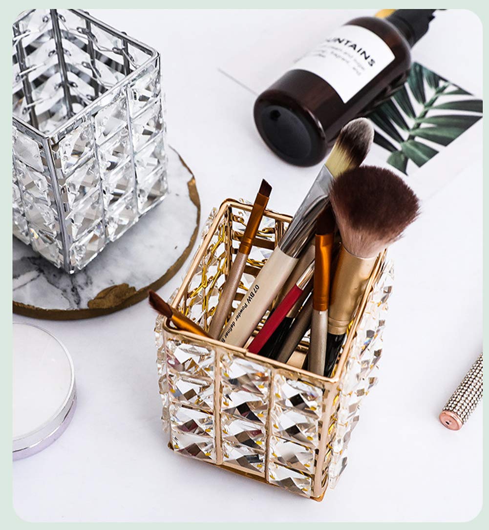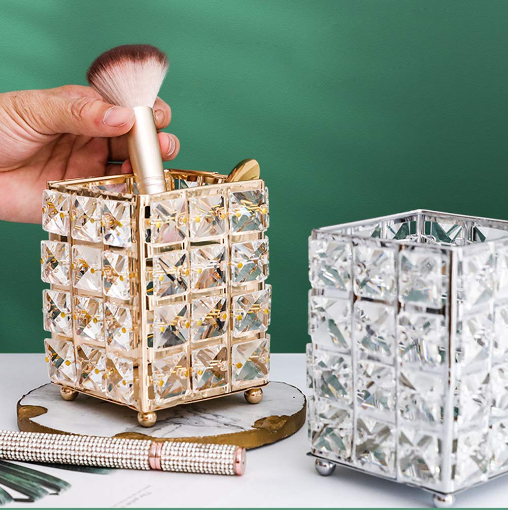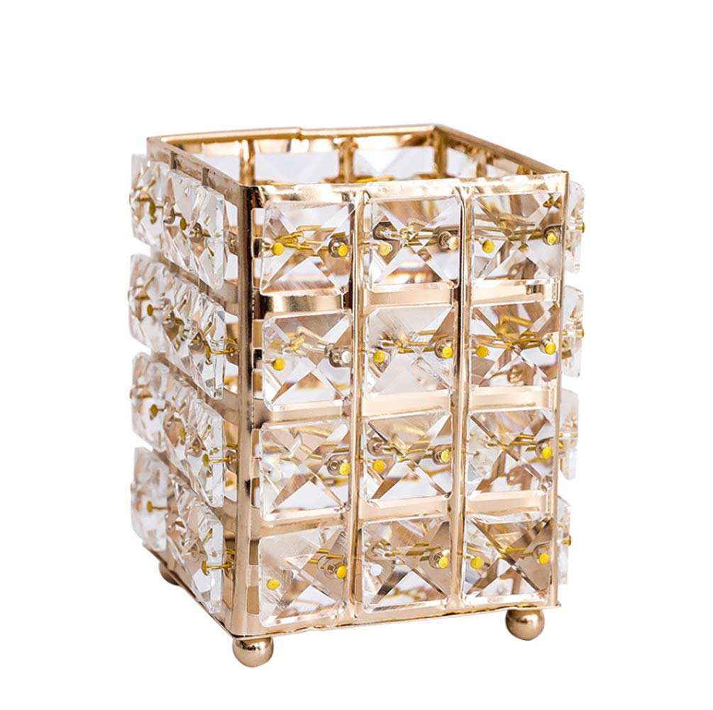 JIARI Makeup Brush Holder Organizer Crystal Cup Comb Brushes Pen Collection Cosmetic Storage (Square Golden)