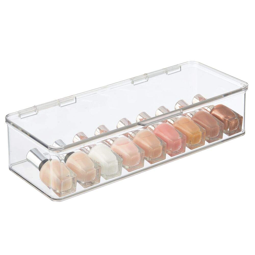 The mDesign cosmetic storage organizer box is perfect for keeping makeup essentials in one convenient place. Organize eyeshadow, blush, mascara, eyeliner, lipstick, and more. Convenient and stackable, these boxes can be used all over the home, not just in the bathroom! The hinged lids make the boxes easy to stack to create vertical, space-saving storage in bathroom or vanity drawers, closets, under sink cabinets and shelves. It's easy to create the storage solution that works best for you - in any room of your home!