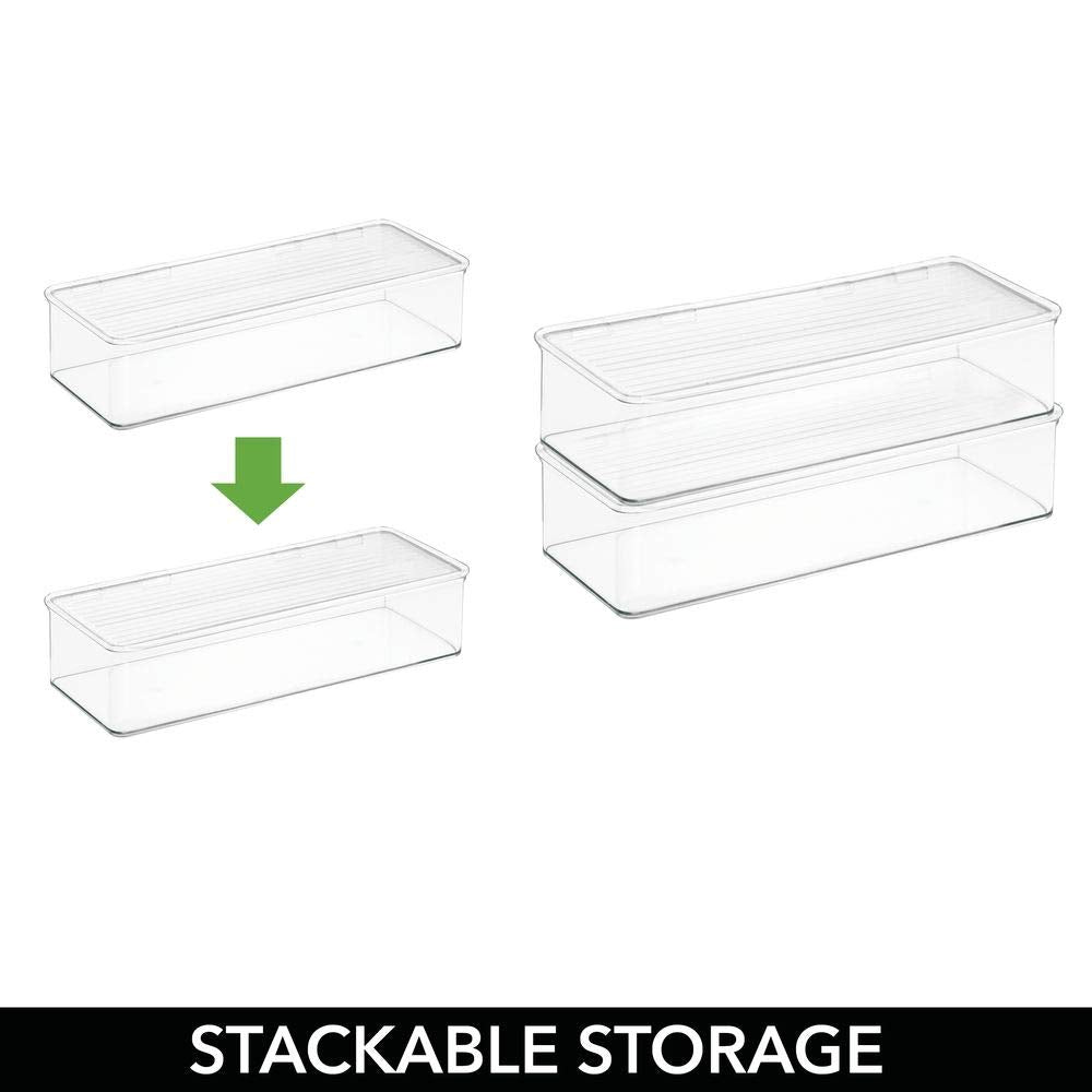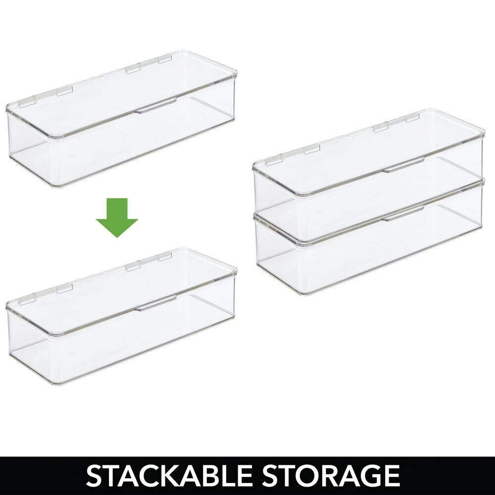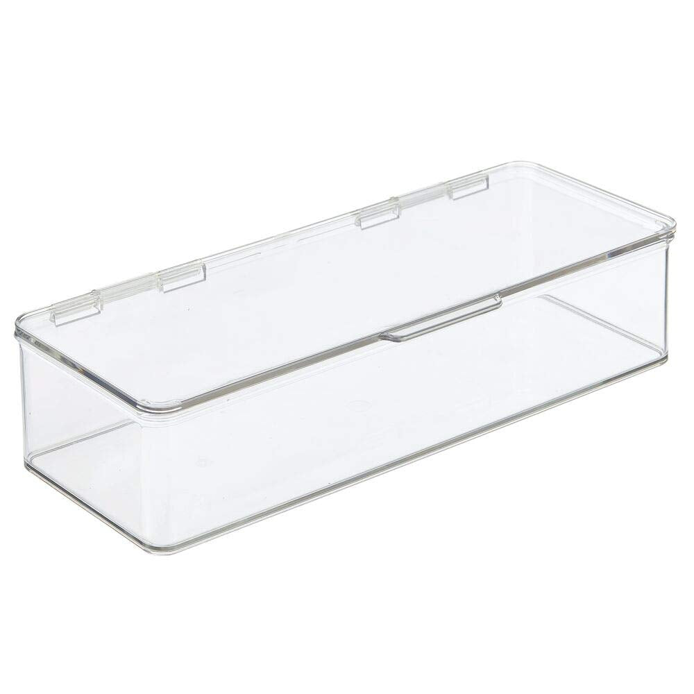 - FUNCTIONAL & VERSATILE: Use in any room of the home; Great for keeping small items organized and easy to find; This lidded box is a perfect storage accessory for bathroom vanities, countertops, bedroom dresser tops, makeup tables, and it's also great in the office for storing office supplies; mDESIGN TIP: Use this to store your kid's toys: building blocks, dolls, doll clothes, action figures, cars, army men and more are easy to organize and the boxes make cleaning up quick and easy