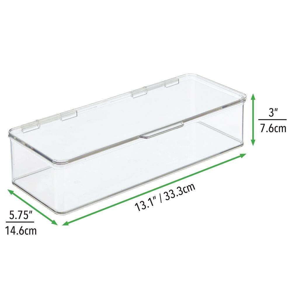 mDesign Makeup Stackable Storage Organizer Box with Attached Lid for Bathroom Vanity, Countertops, Drawers - Holds Blenders, Eyeshadow Palettes, Lipstick, Gloss, Makeup Brushes - 3" high - Clear