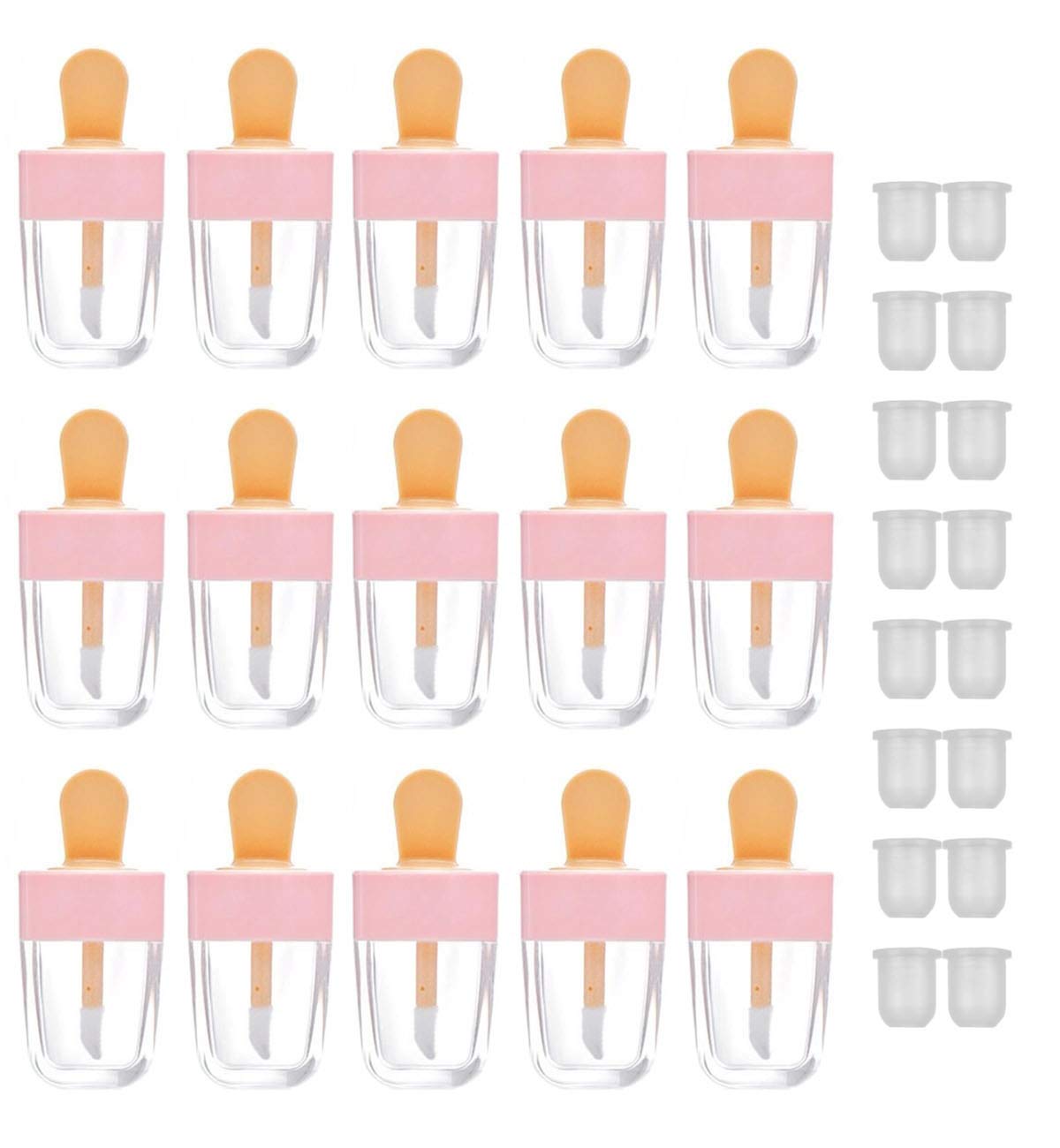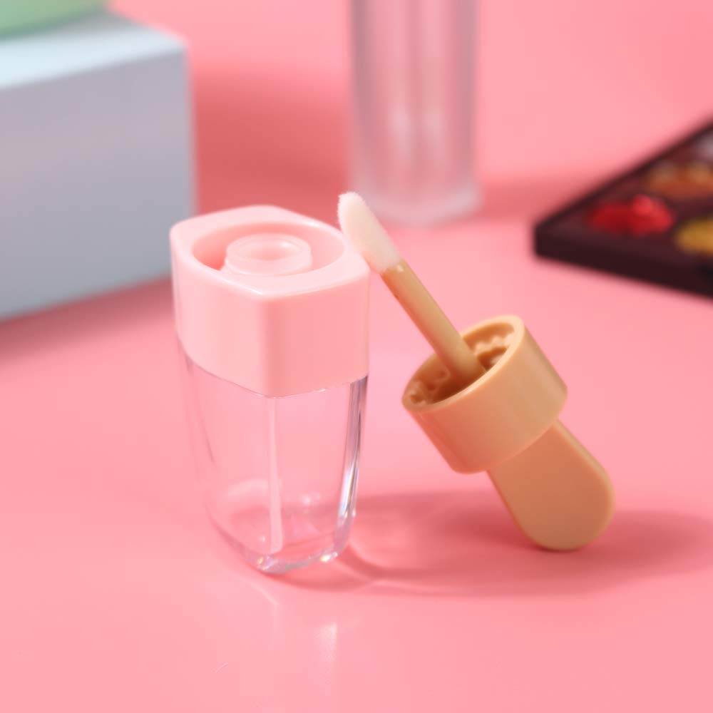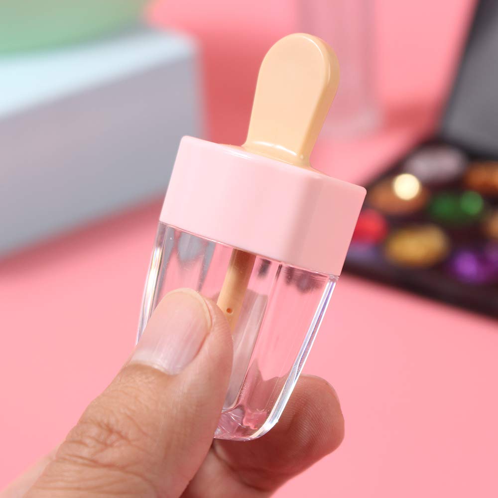 MISAZ 16 Pieces Empty Lip Gloss Tubes 5ml/0.2oz Adorable Pink Ice-cream Shaped Refillable Lip Balm Bottles Cosmetic Samples Container DIY Lip Glaze Vials Storage Bottle for Women Makeup Girls Beauty