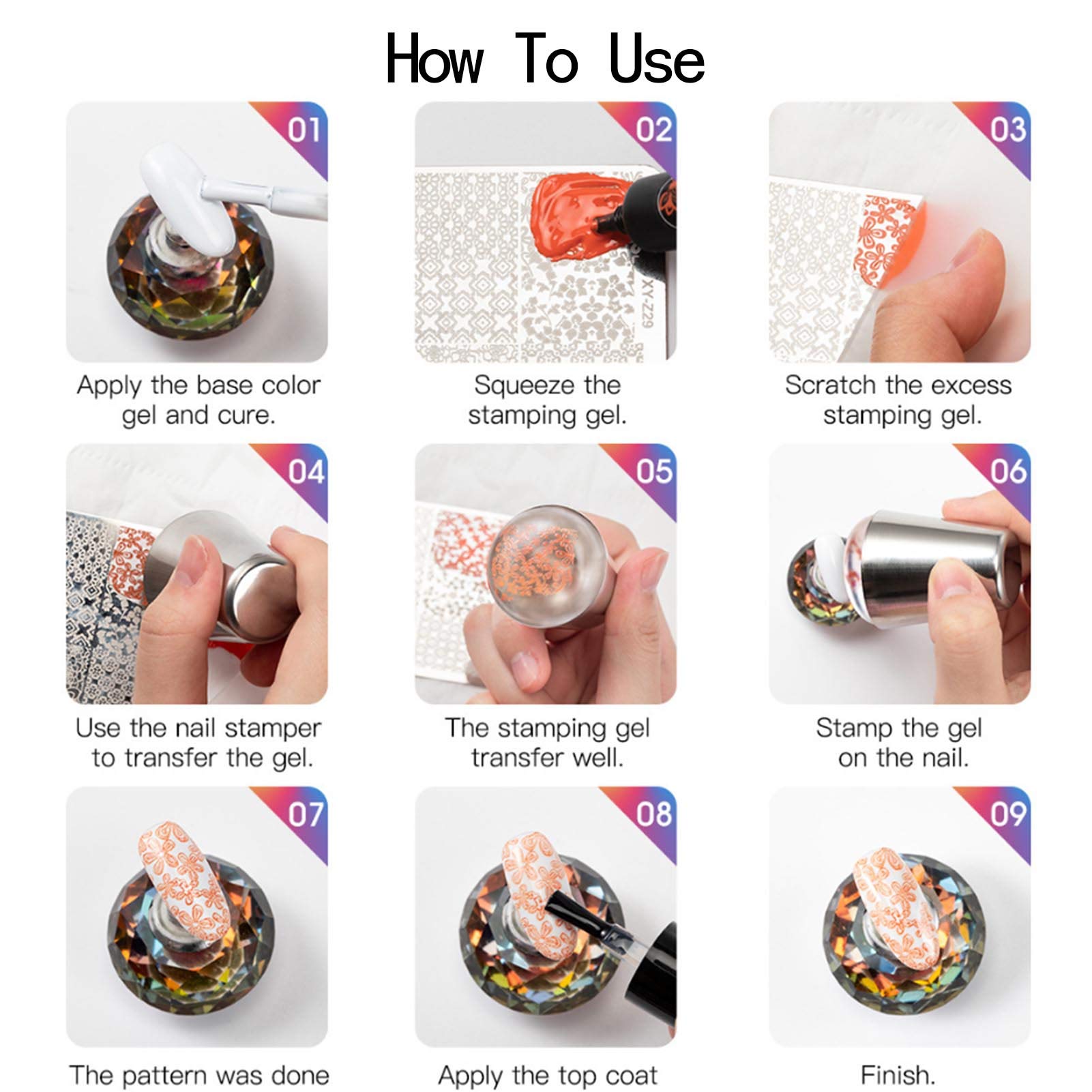 - ♕[PACKAGE INCLUDED]: The nail art stamp kit include 1 stamper,1 scraper and 1 Storage Bag.Suitable for different size image designs, easy and fast for DIY nail art, apply to your nails or other objects.